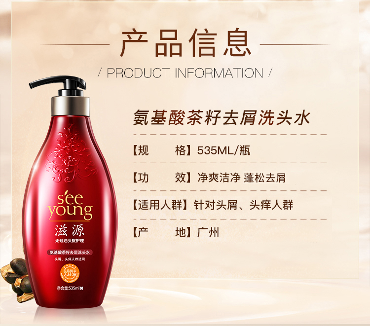 滋源(seeyoung) 氨基酸茶籽去屑洗头水535ml(单位:瓶)红色