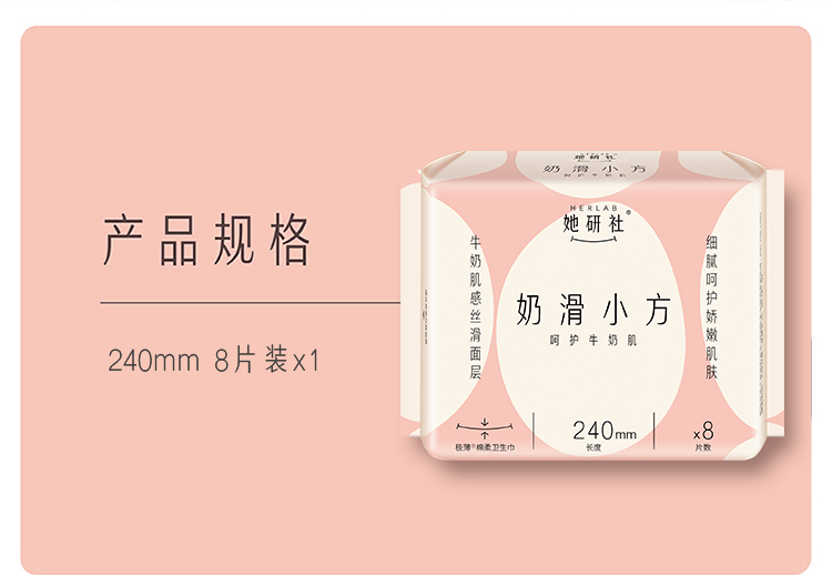 她研社奶滑小方干爽透气卫生巾240mm日用8片(单位:包) 白色