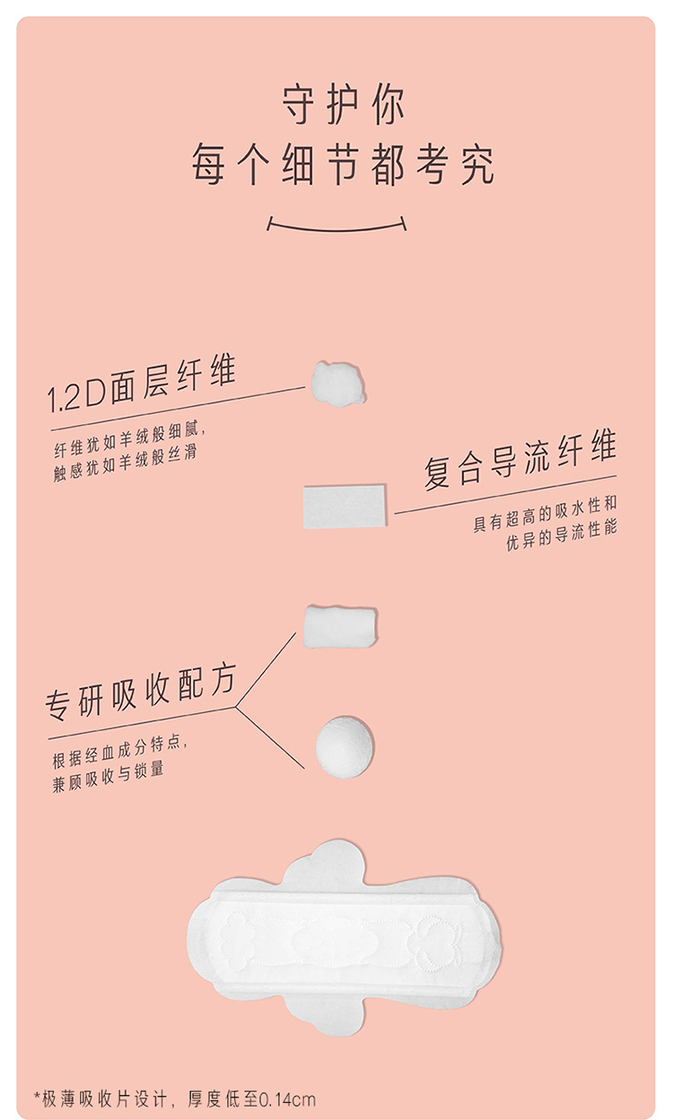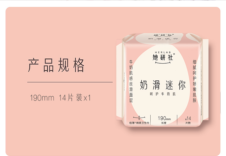 她研社奶滑小方干爽透气卫生巾190mm迷你日用14片(单位:包) 白色