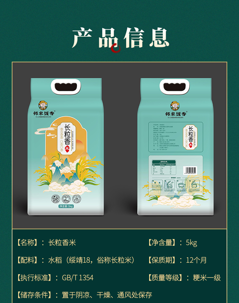 邻家饭香 东北大米 长粒香 5kg 蓝色(单位:袋)