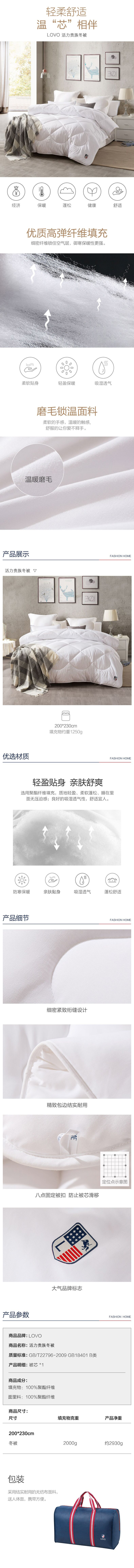 罗莱生活荣誉出品LOVO活力贵族纤维冬被200*230cm 白色