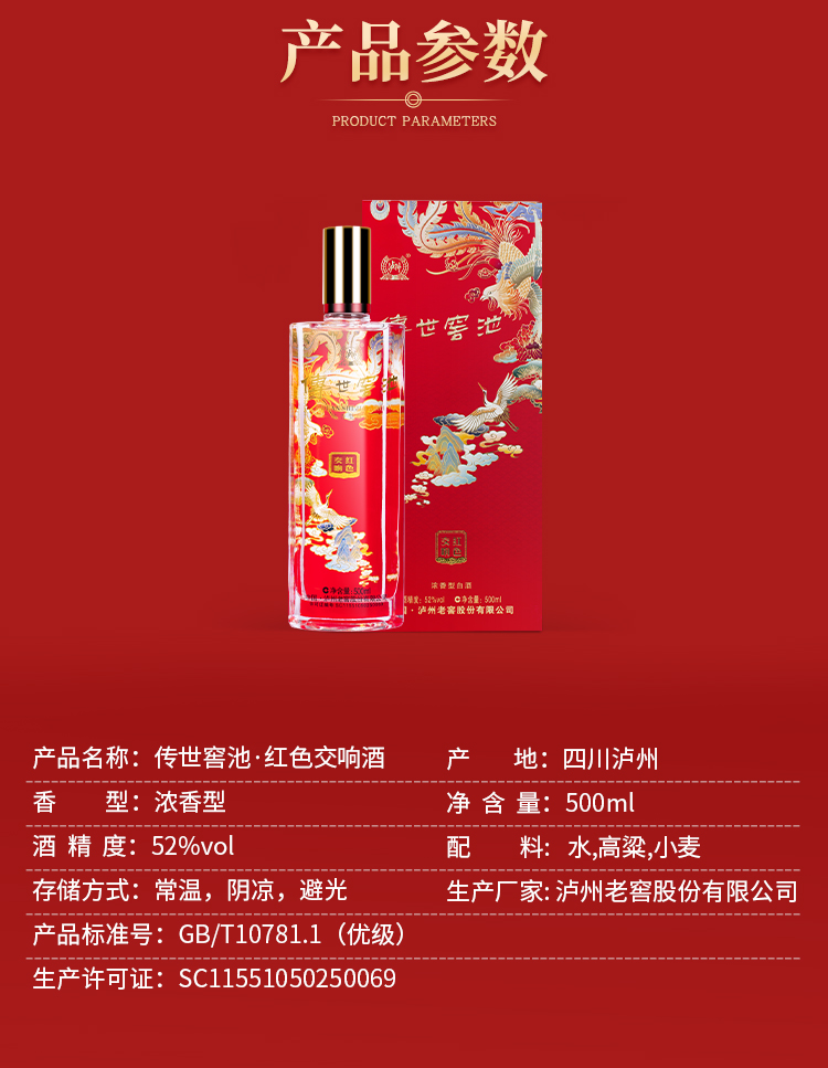 泸州老窖传世窖池 红色交响 52度浓香型白酒 泸州老窖股份公司出品 500ml单瓶装