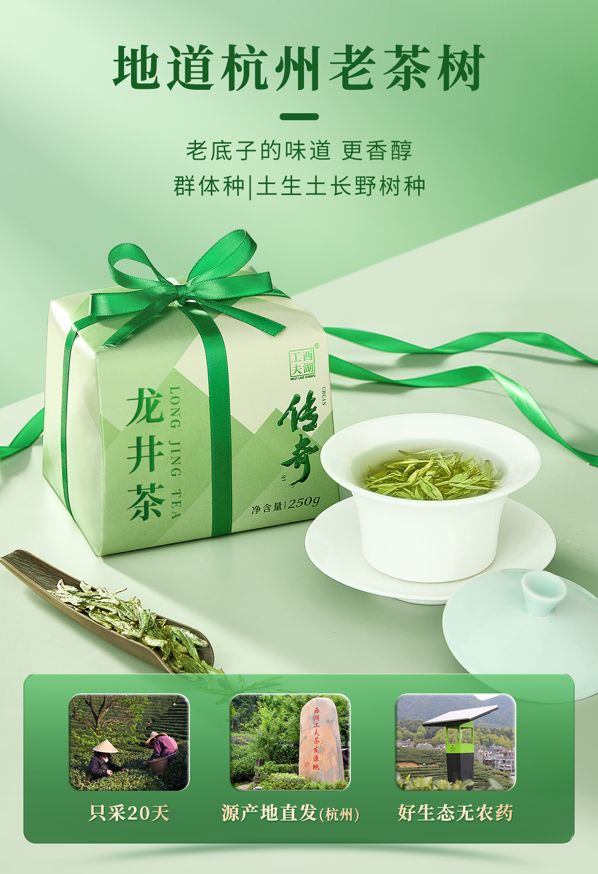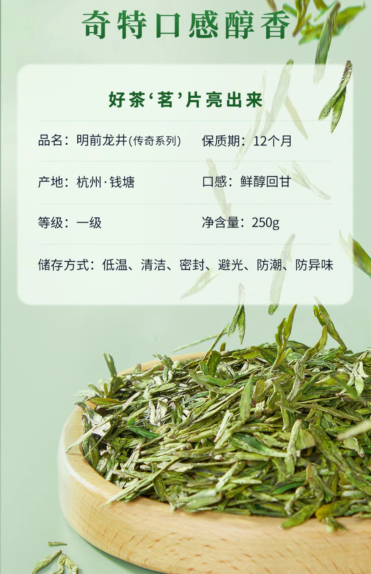 西湖工夫杭州龙井明前一级绿茶250g 1盒