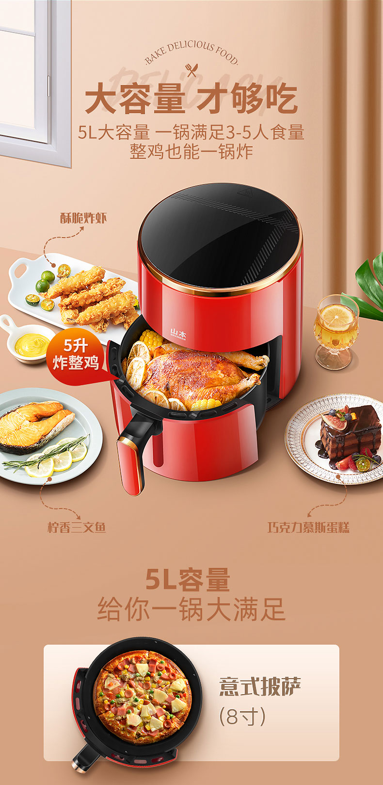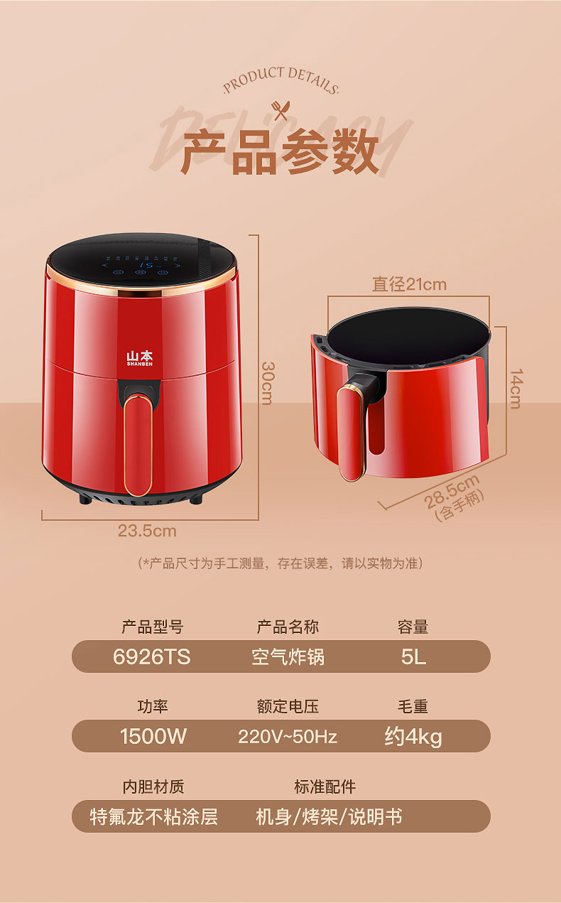 山本 空气炸锅 6926TS(单位:台) 红色