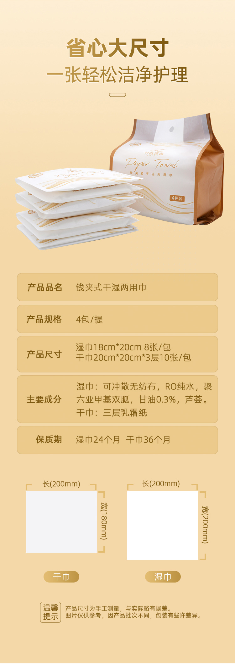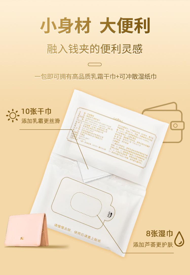 劳薇露薇钱夹式干湿两用巾4包/提*3提干巾+湿巾 自然色