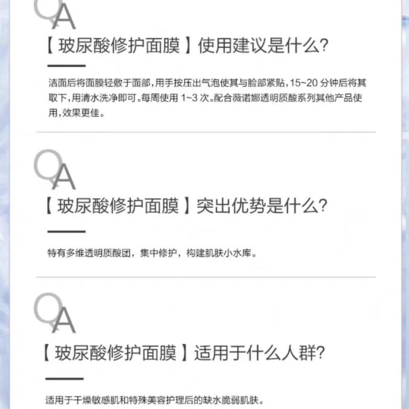 薇诺娜玻尿酸修护面膜 25g*6片 白色