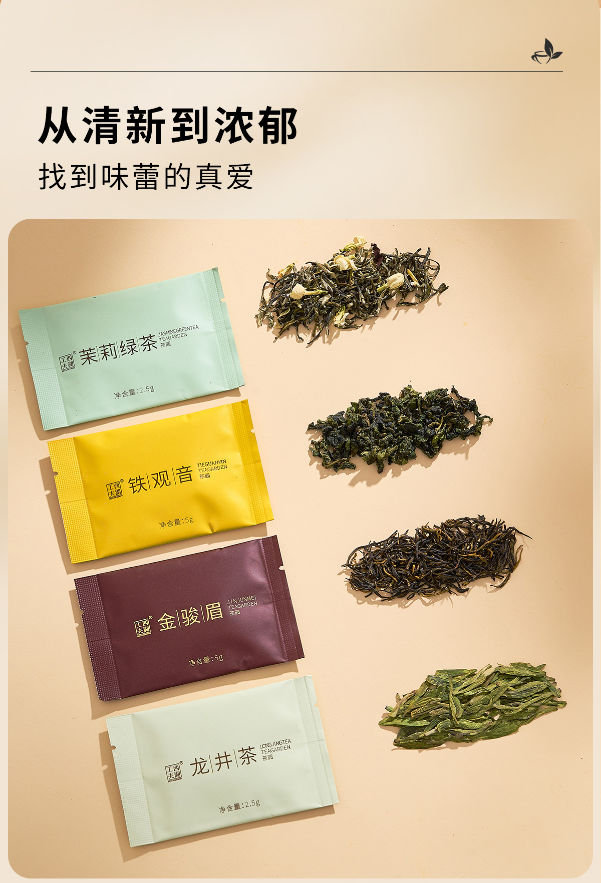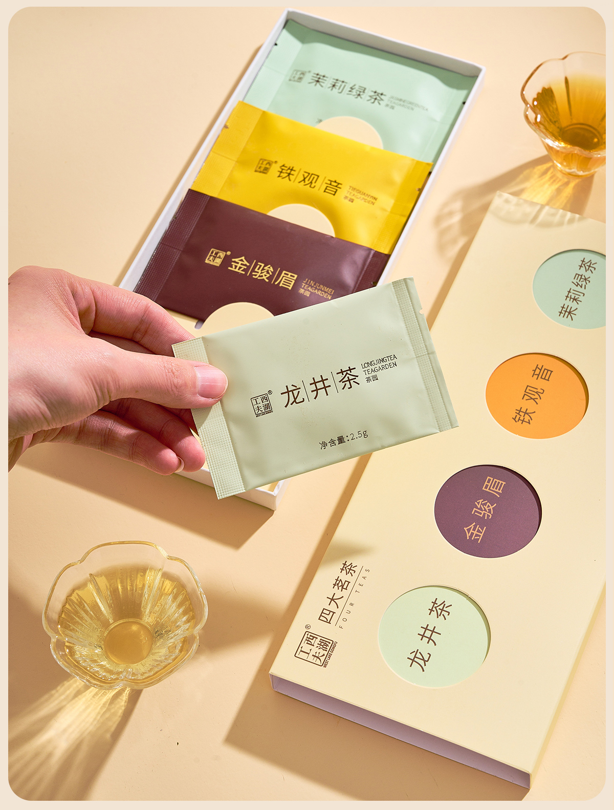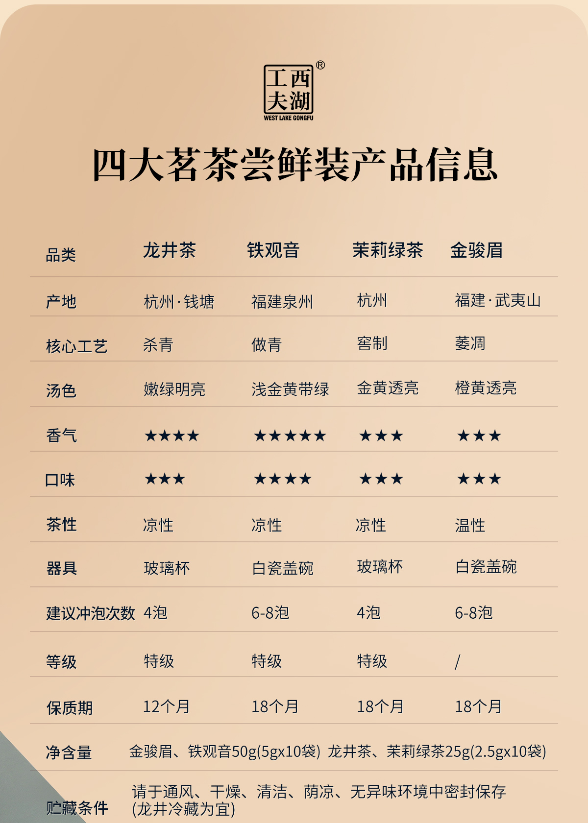 西湖工夫四大茗茶组合装龙井茶铁观音金骏眉茉莉绿茶特级15g 1盒