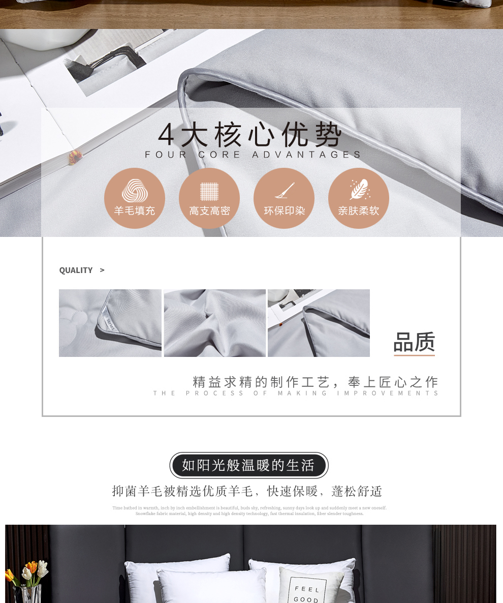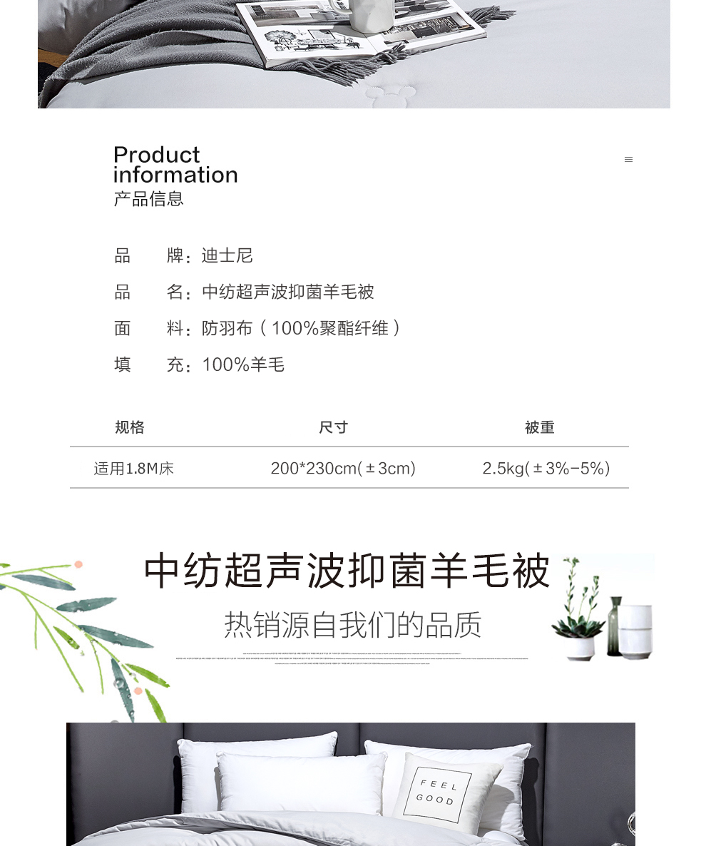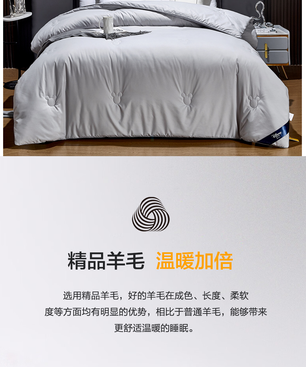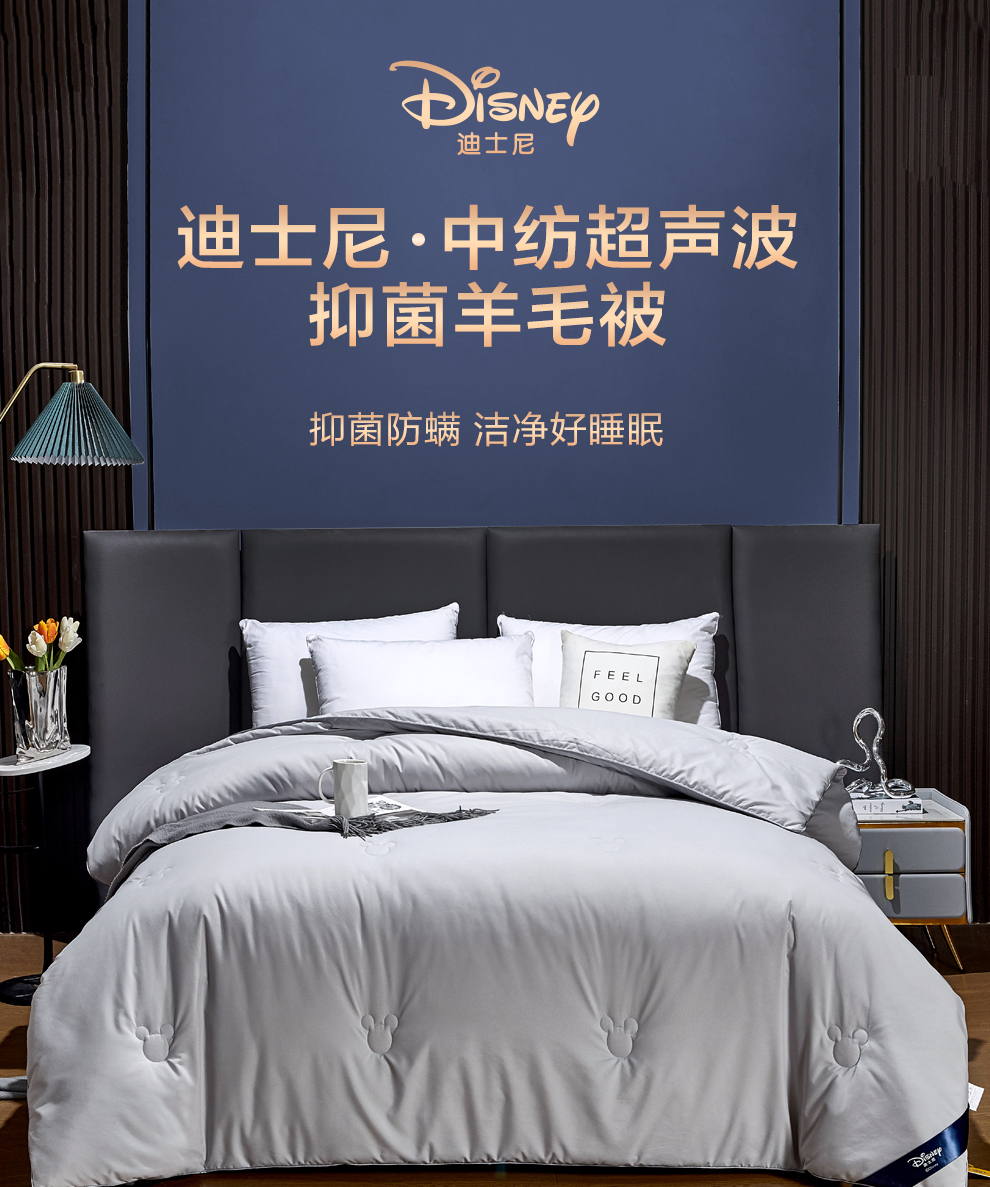 迪士尼·中纺超声波抑菌羊毛被 珍珠灰