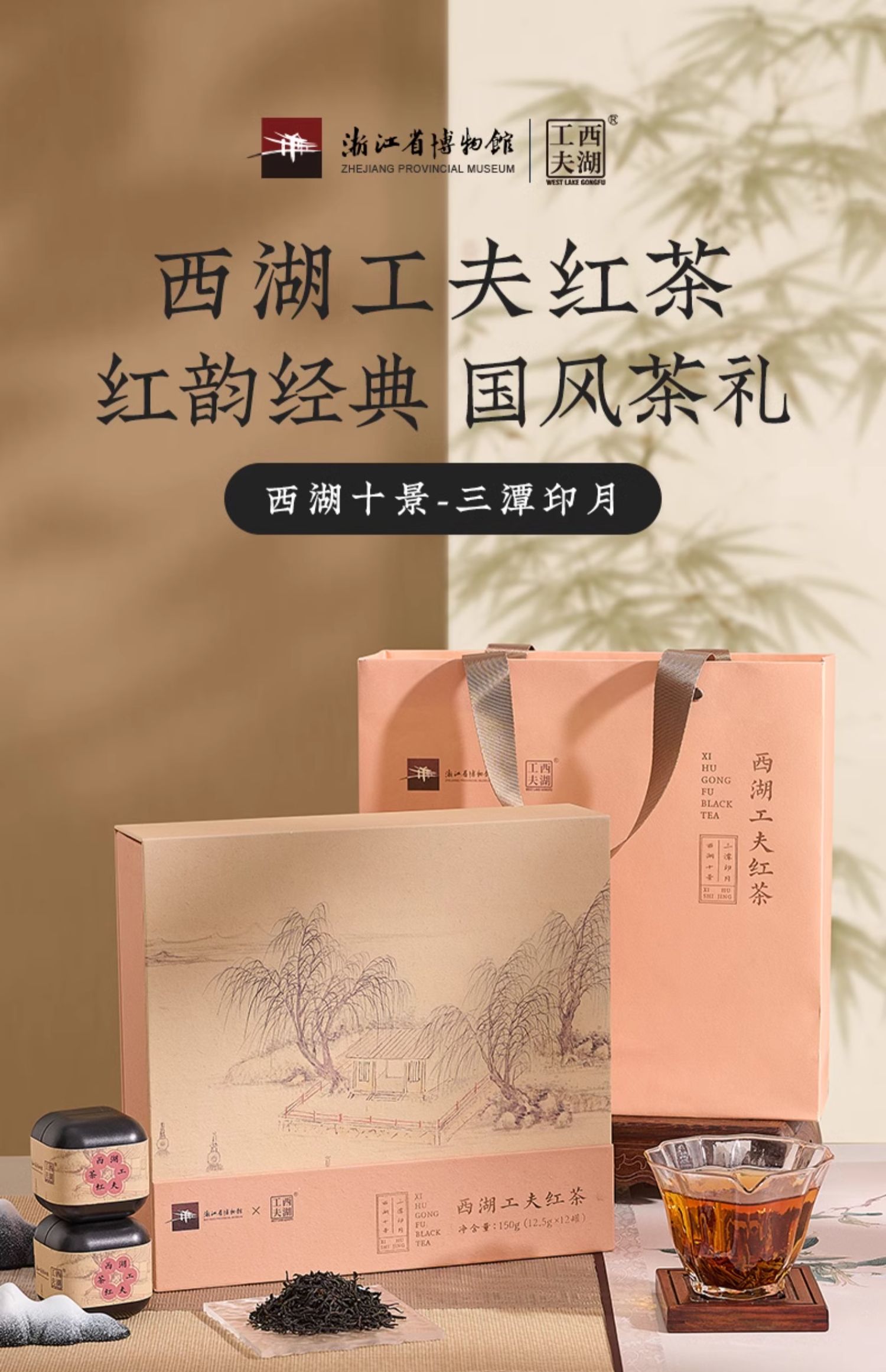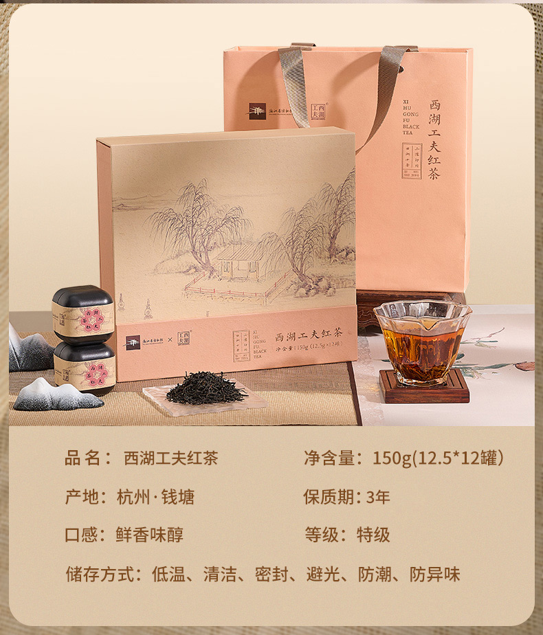 西湖工夫【博物馆联名】西湖工夫龙井红茶特级九曲红梅礼盒 特级150g 1盒