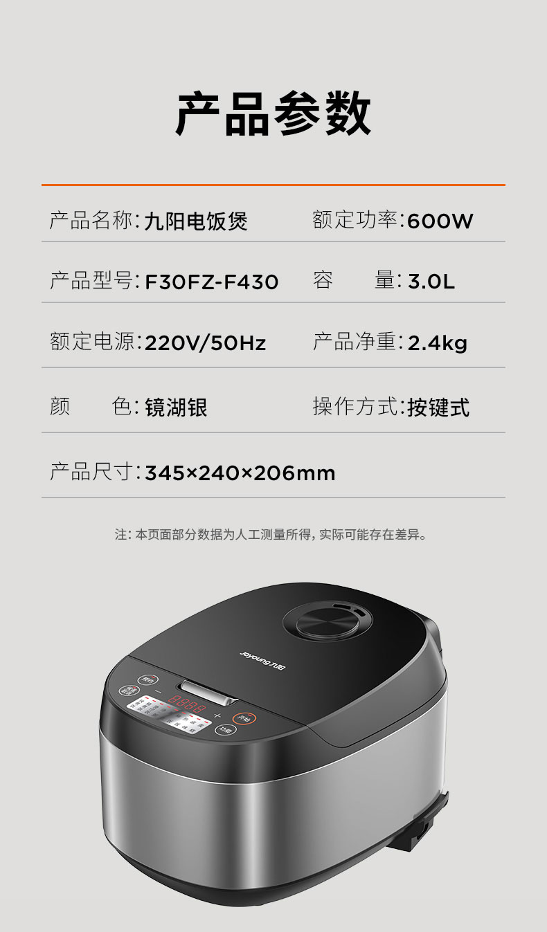 九阳(Joyoung)F30FZ-F430电饭煲3L电饭锅(单位:台) 银色