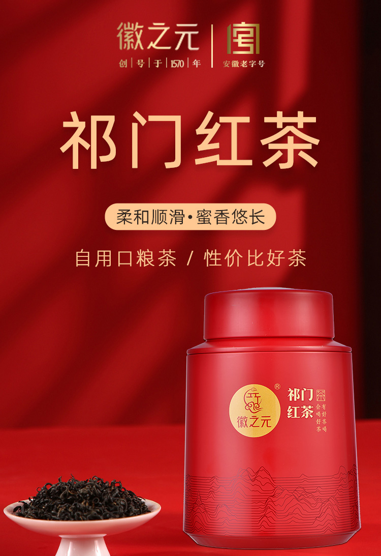 徽之元 祁门红茶 一级(风系列)500g红福罐红茶香螺 红色福罐