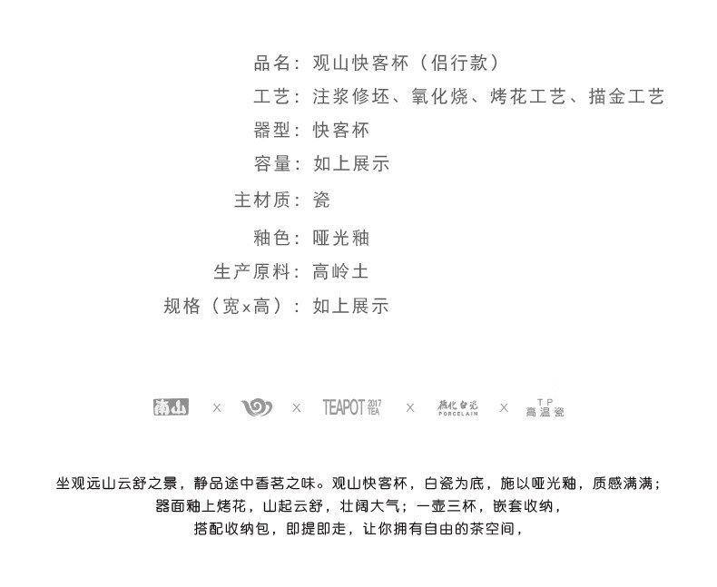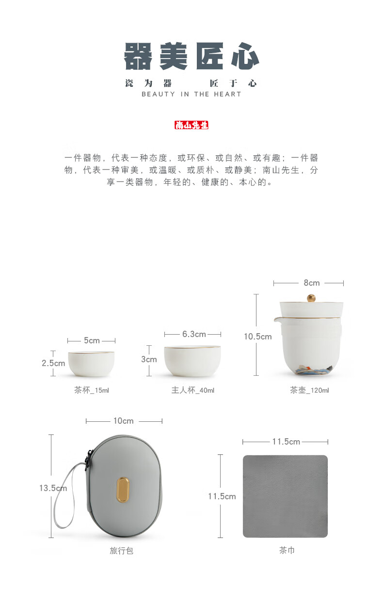 南山先生 旅行茶具户外便携式茶具 一壶三杯 观山快客杯 1套 单位:套