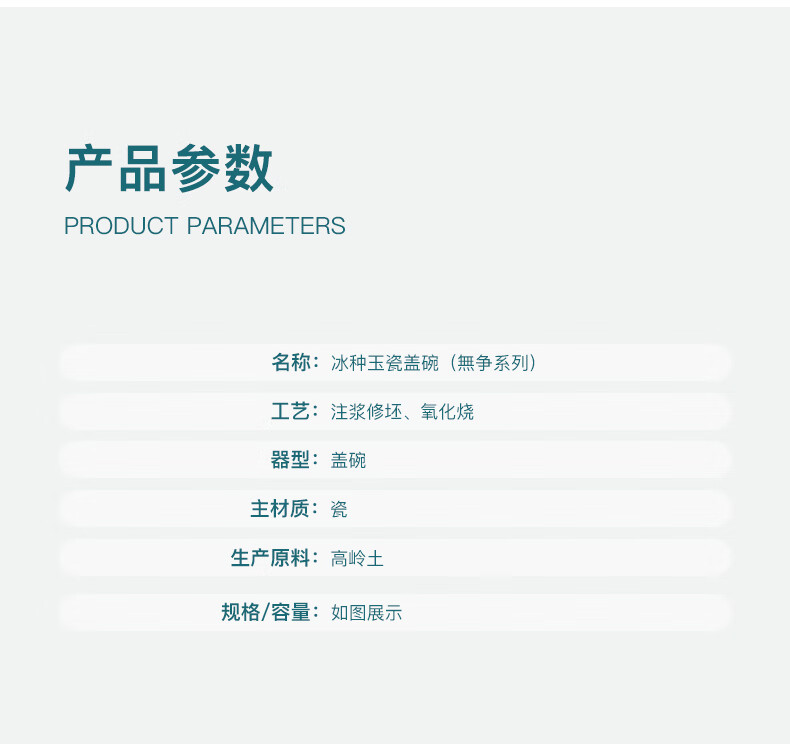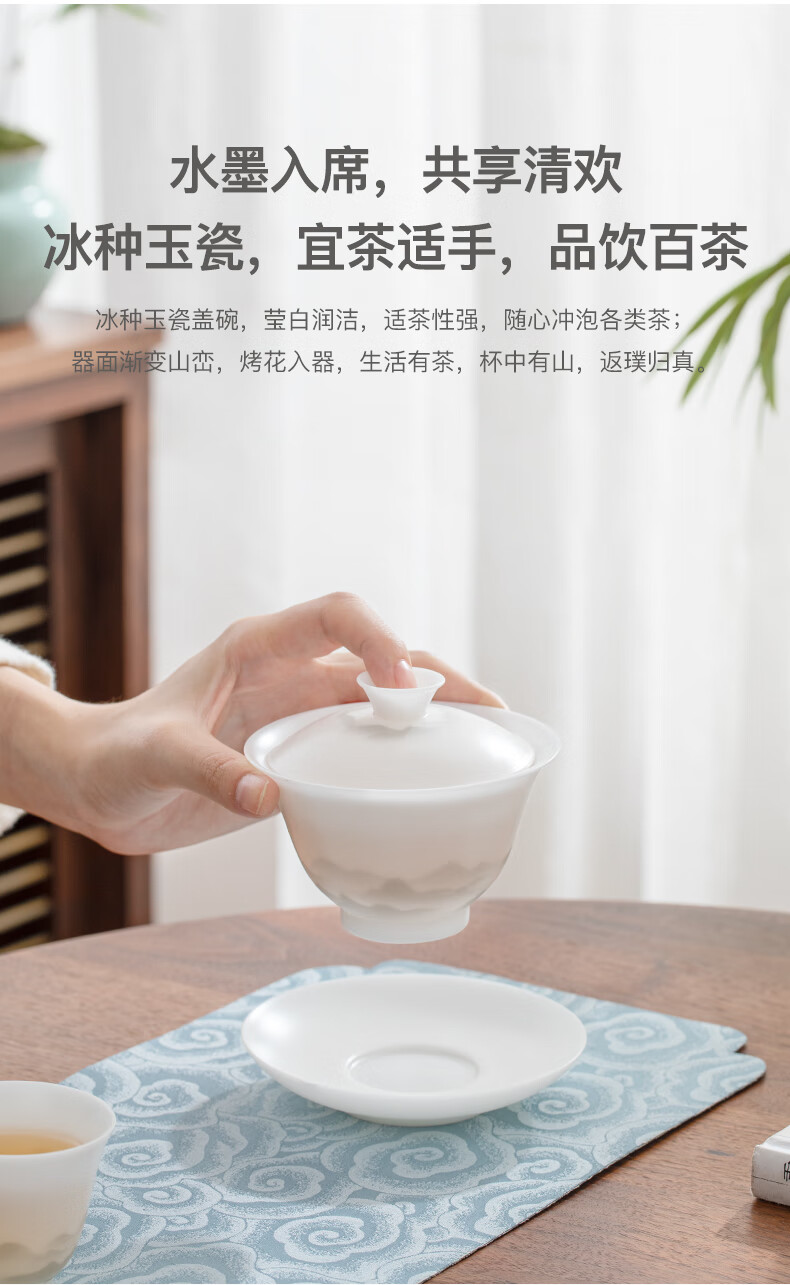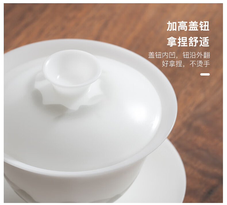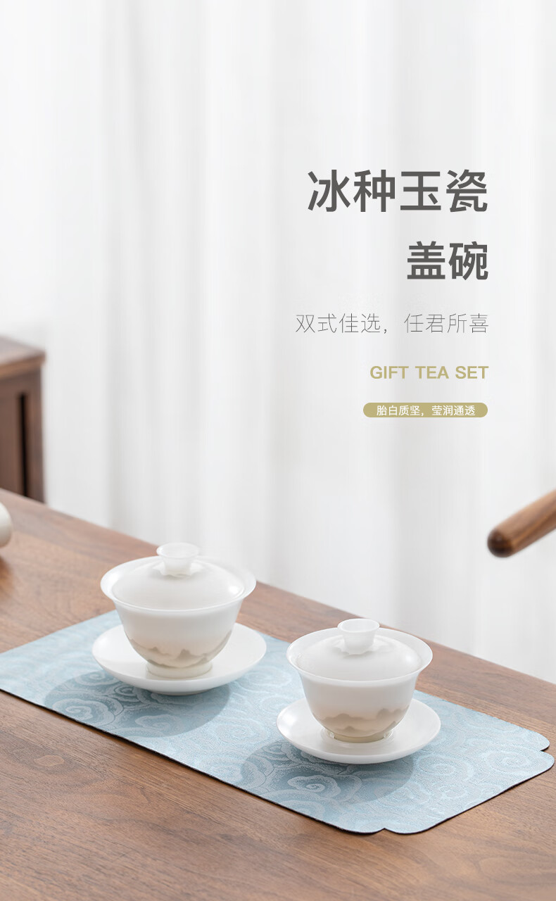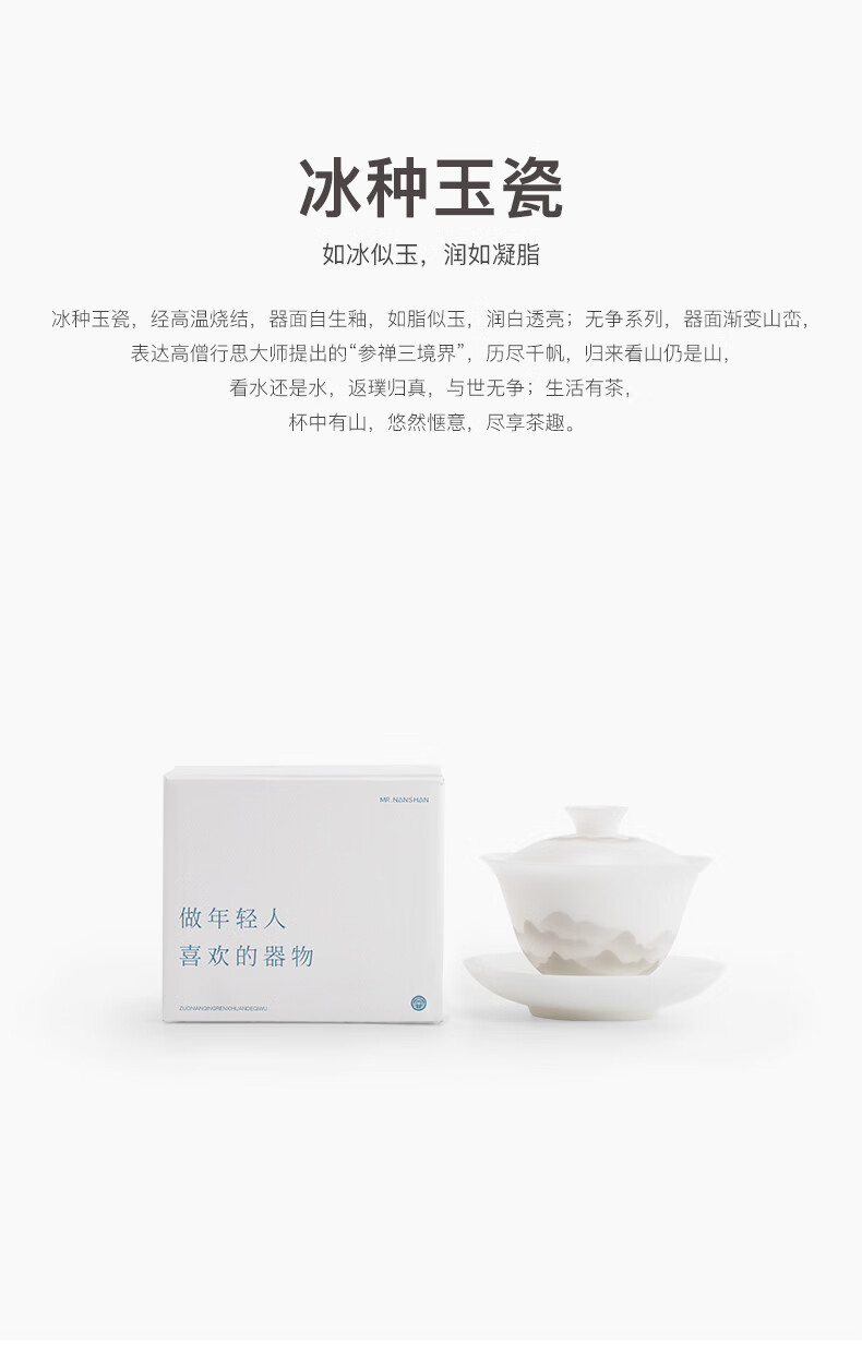 南山先生 冰种玉瓷盖碗1个 _圆融款 单位:套