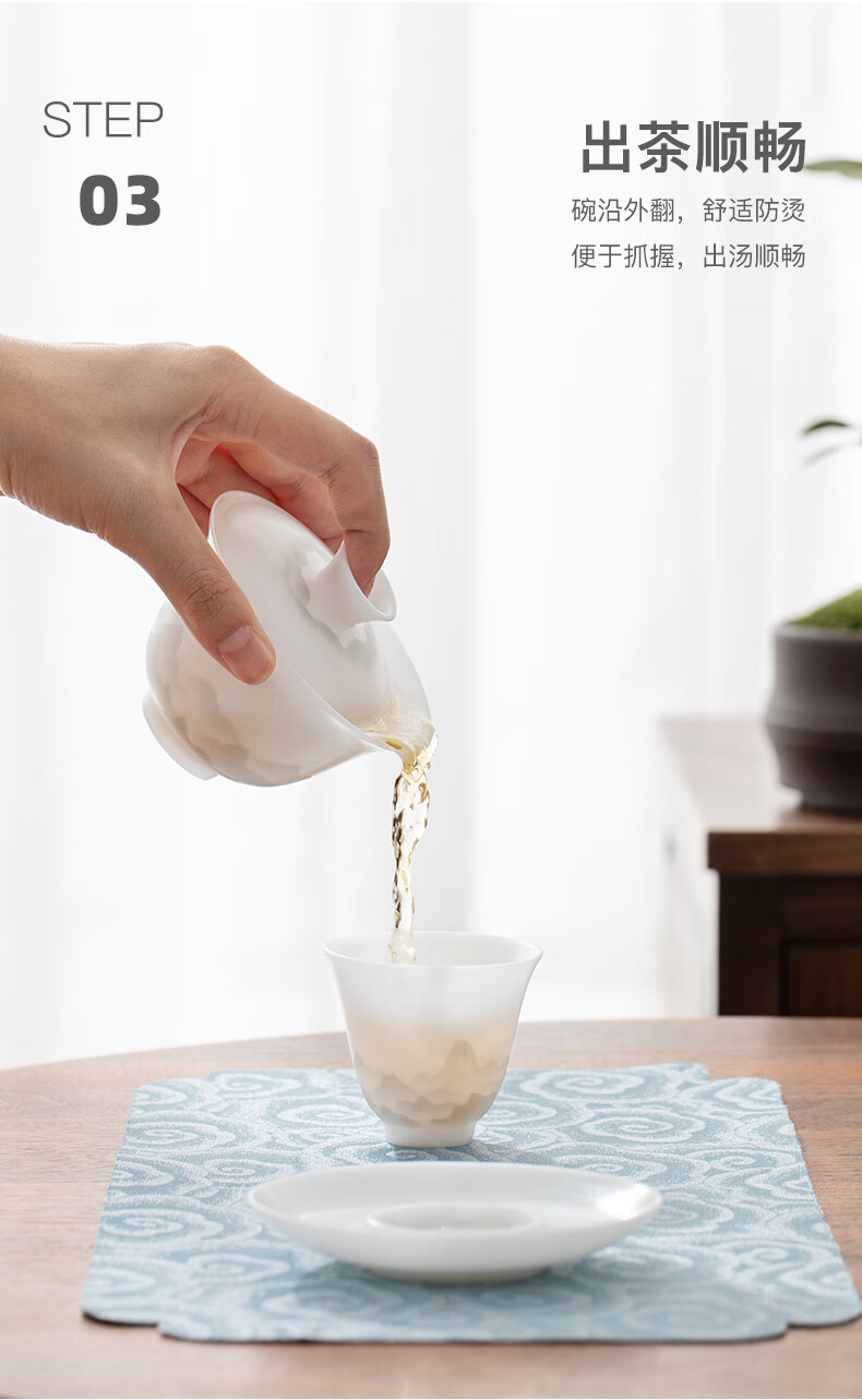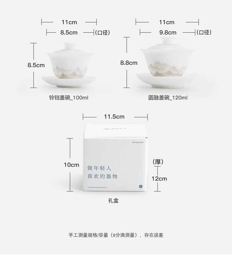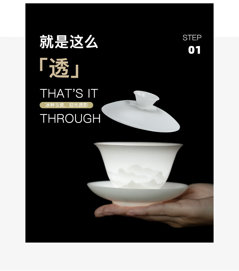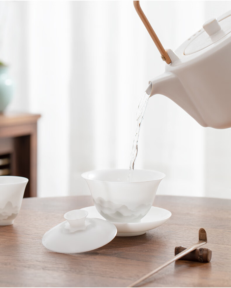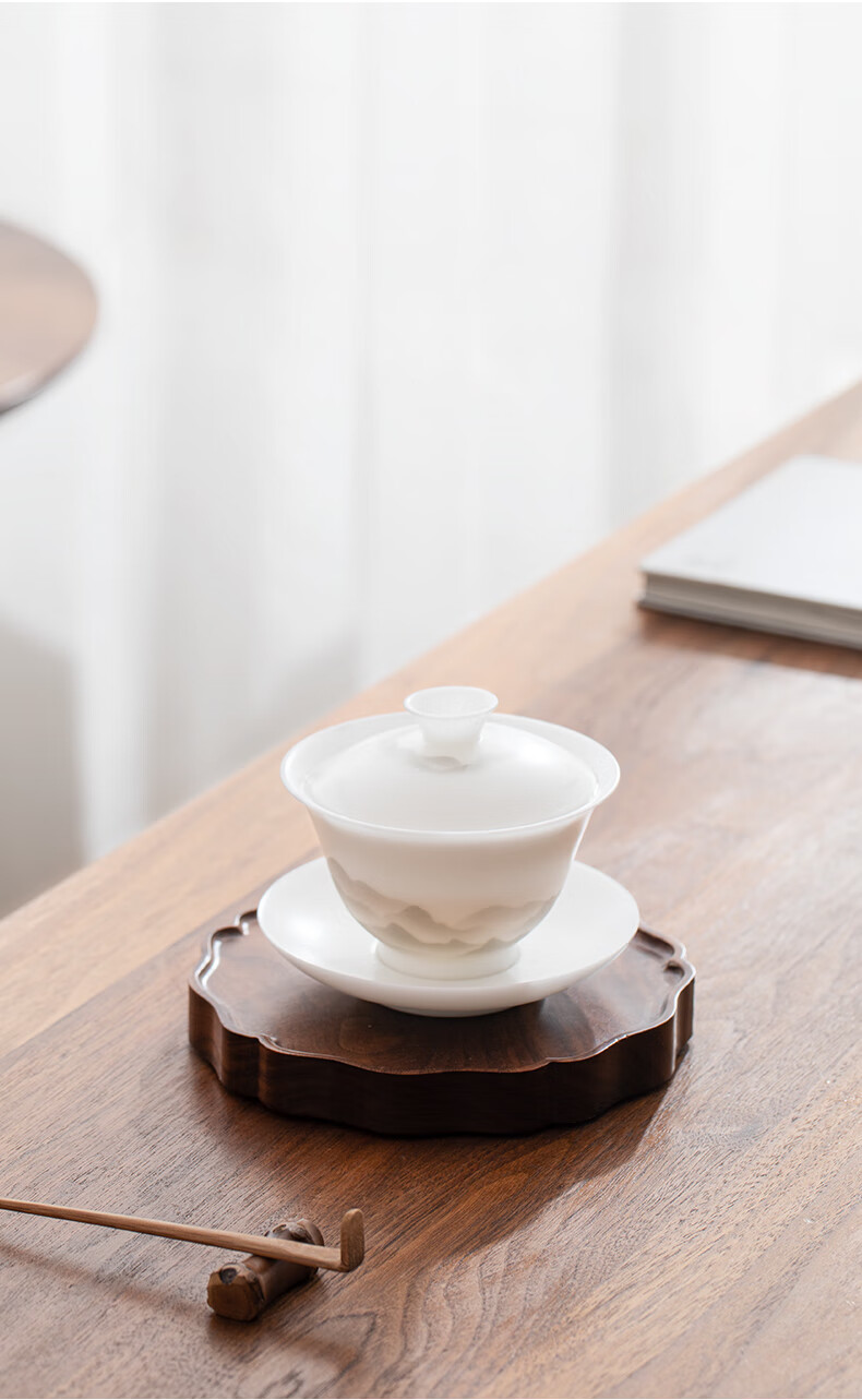 南山先生 冰种玉瓷盖碗1个 _圆融款 单位:套