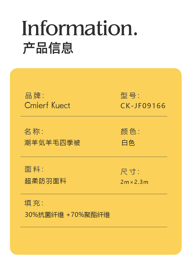 Cmierf Kuect (中国CK)潮羊気羊毛四季被 CK-JF09166单位:袋 白色