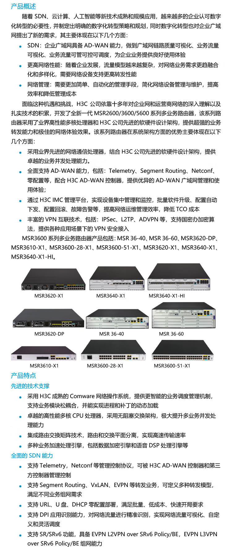 新华三(H3C)RT-MSR3640-X1路由器主机包含一个电源 单位:个 黑色