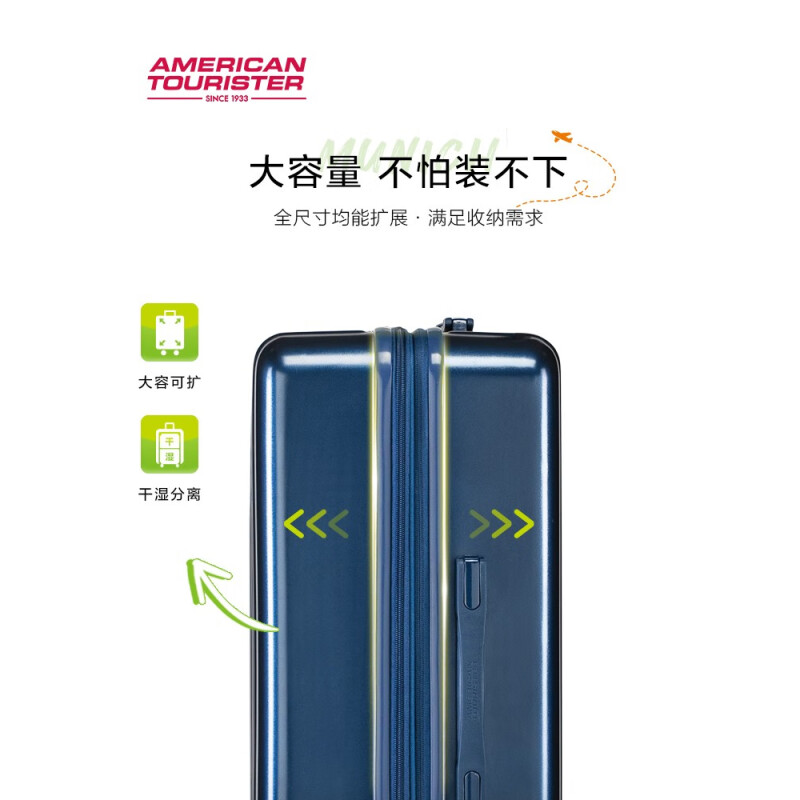 美旅拉杆箱 可扩容防刮旅行箱男女轻便短途差旅大容量密码行李箱 79B 深蓝色 20英寸无侧把手 蓝色 20寸