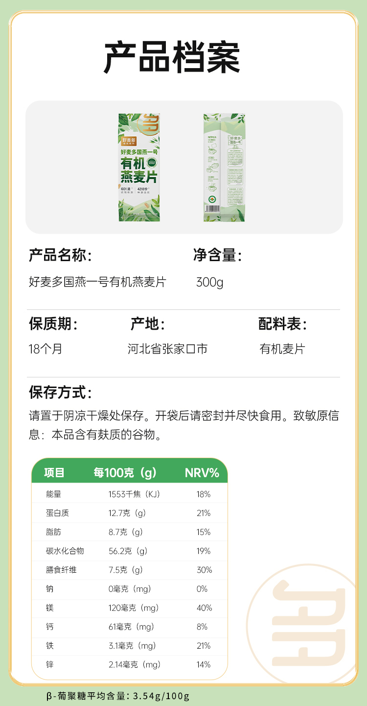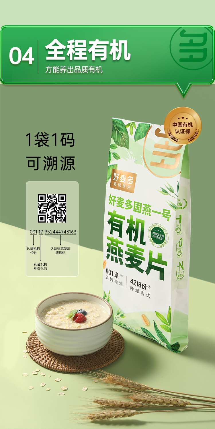 好麦多 国燕一号有机燕麦片300g 5袋装 单位:袋 绿色