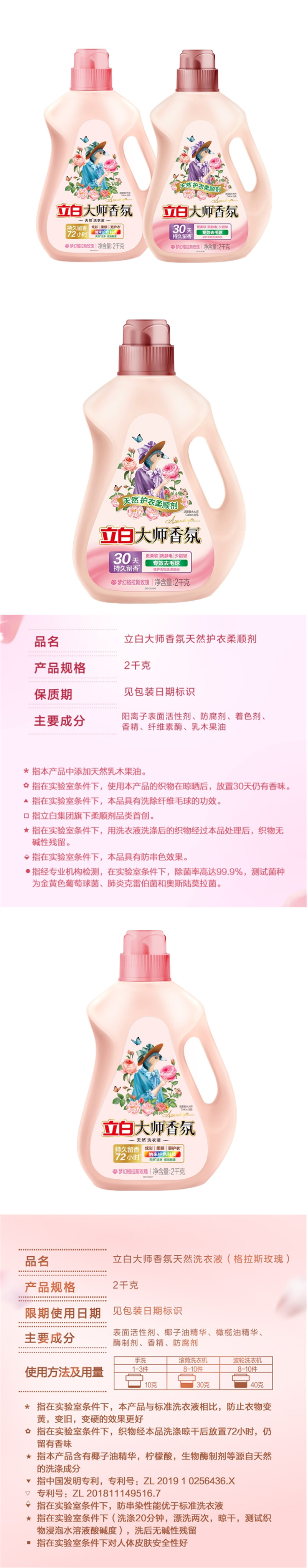 立白大师香氛洗衣柔顺组合LYZH0004 香氛液2kg+柔顺剂2kg 组合