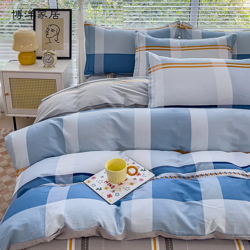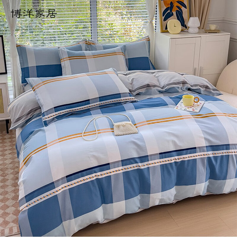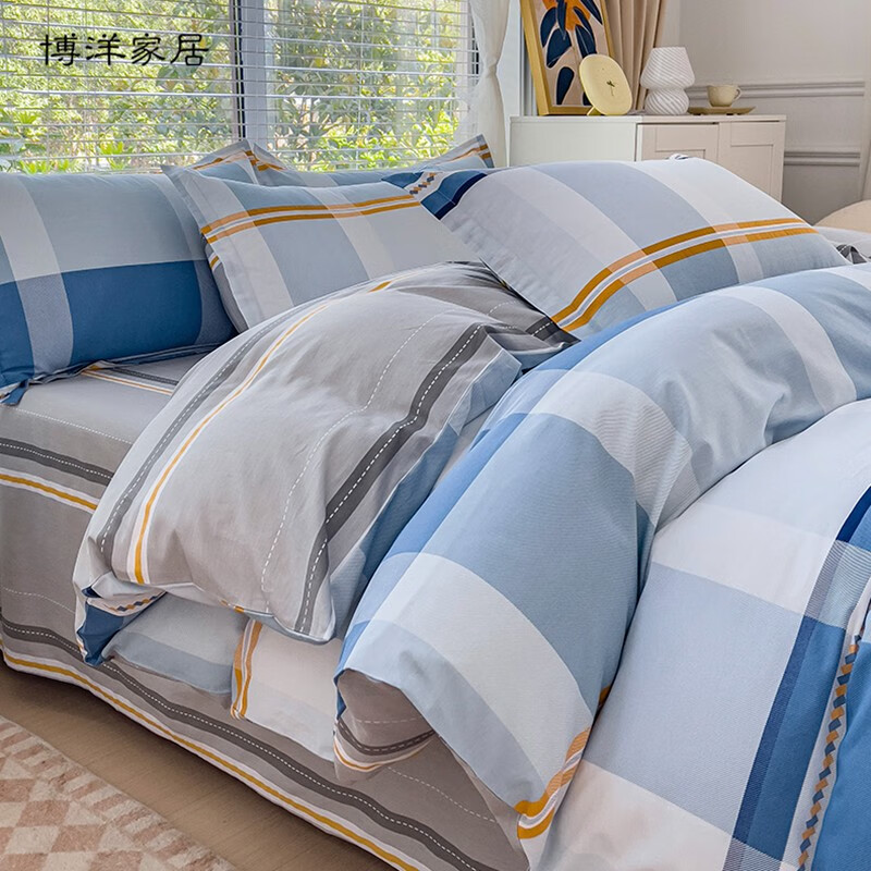 博洋WT902307001C纯棉三件套-蓝调时光150*210cm适用于1.2米床(单位:套) 深蓝色