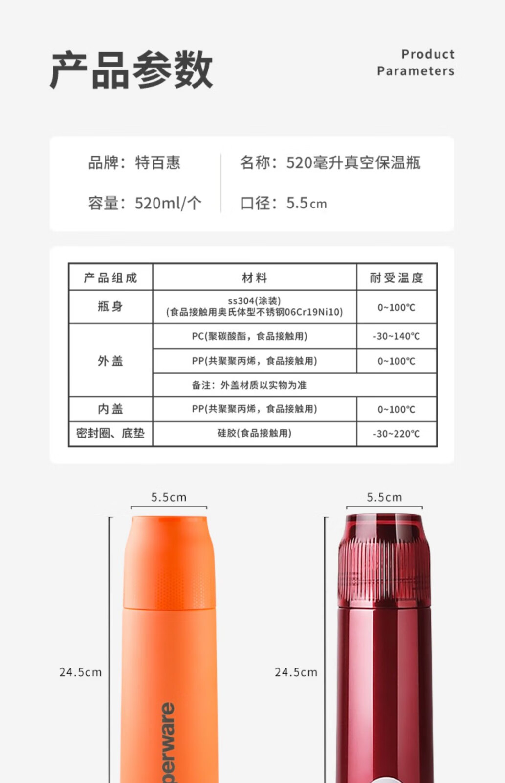 特百惠(Tupperware)520ml真空保温杯 单位:个 孔雀蓝