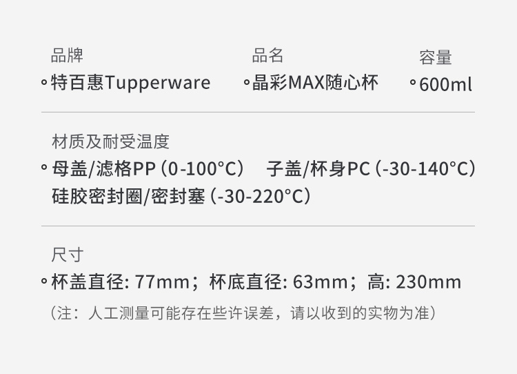 特百惠(Tupperware)600ml晶彩MAX随心杯 (带茶滤格)(单位:个) 梦幻粉