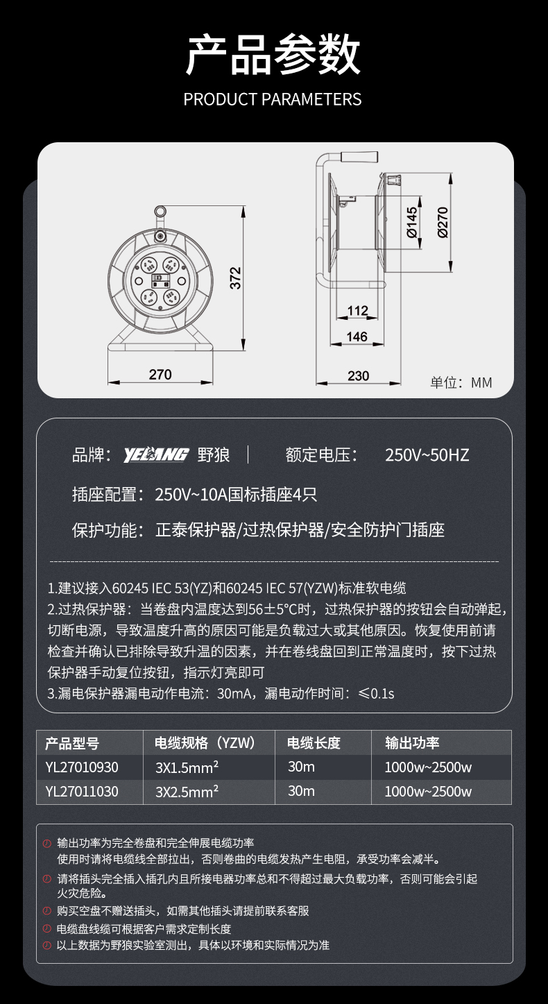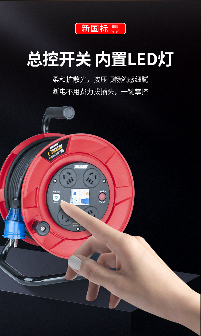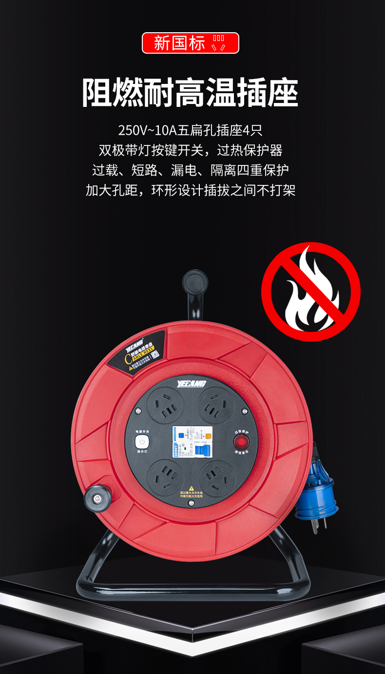 野狼YELANG/YL27010930/YZW 3*1.5*30米250V10A国标电缆盘/只 红色