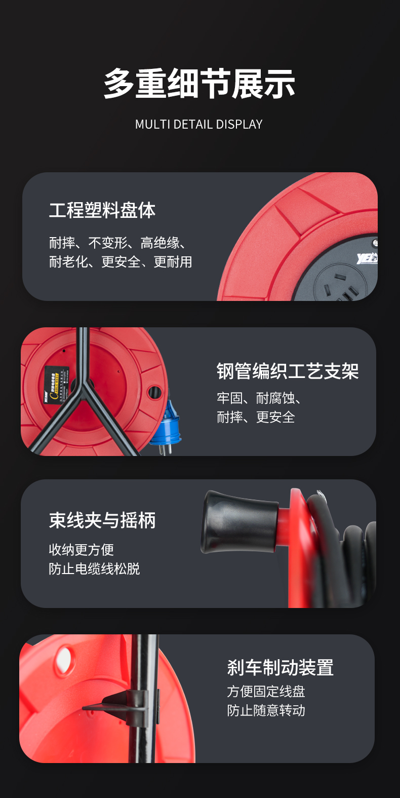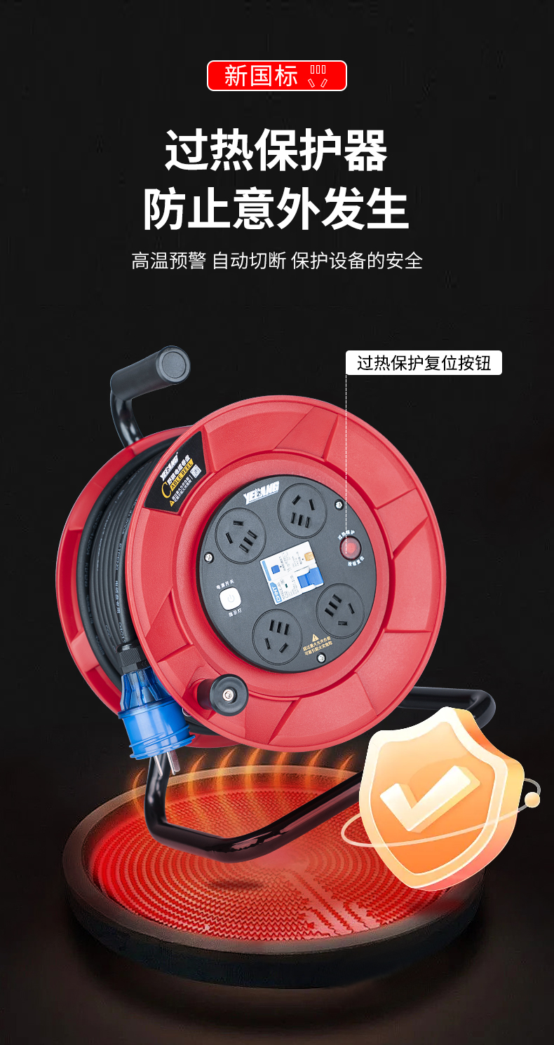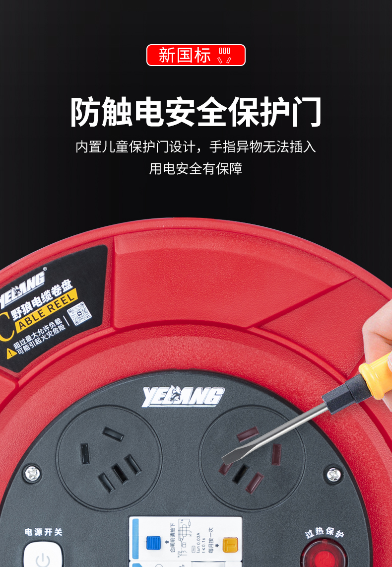 野狼YELANG/YL27011030/YZW 3*2.5*30米250V10A国标电缆盘/只 红色