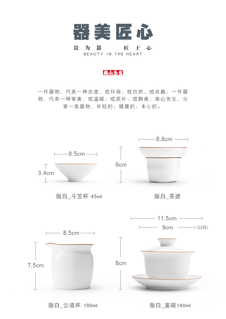 南山先生 脂白9件套装(礼盒装)1套 1盖碗1茶海1茶滤6杯 单位:套