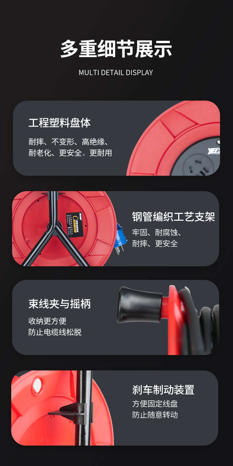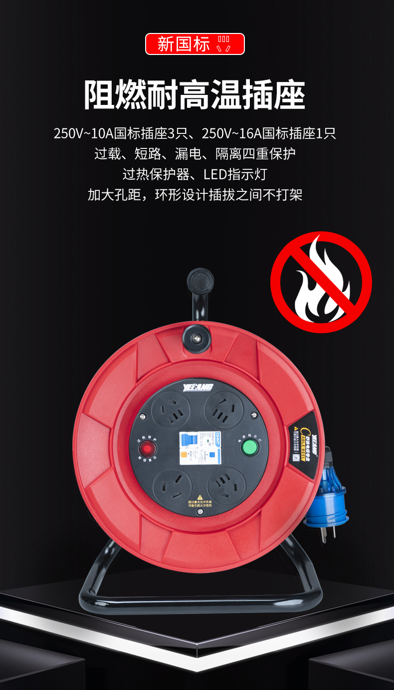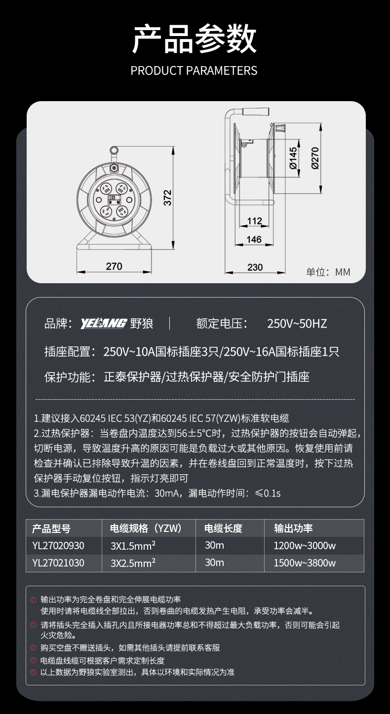 野狼YELANG/YL27021030/YZW 3*2.5*30米250V16A国标电缆盘/只 红色