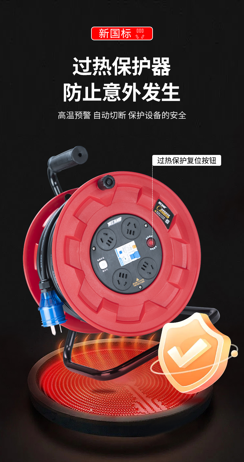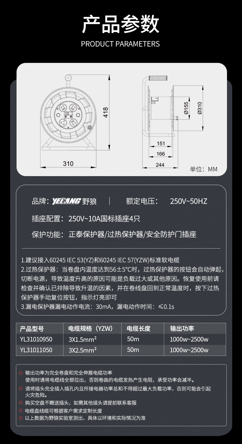 野狼YELANG/YL31011050/YZW 3*2.5*50米250V10A国标电缆盘/只 红色