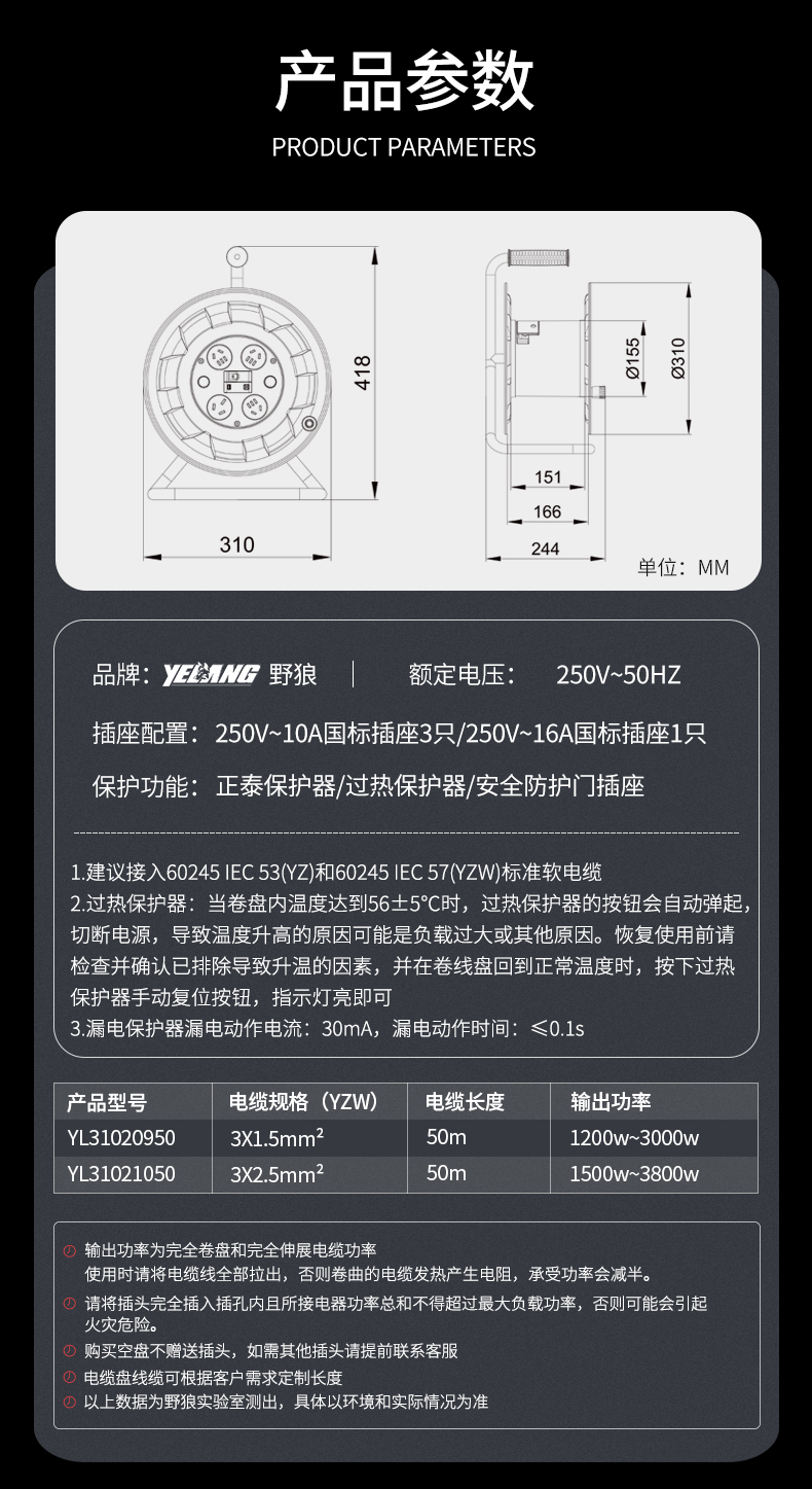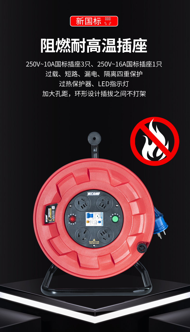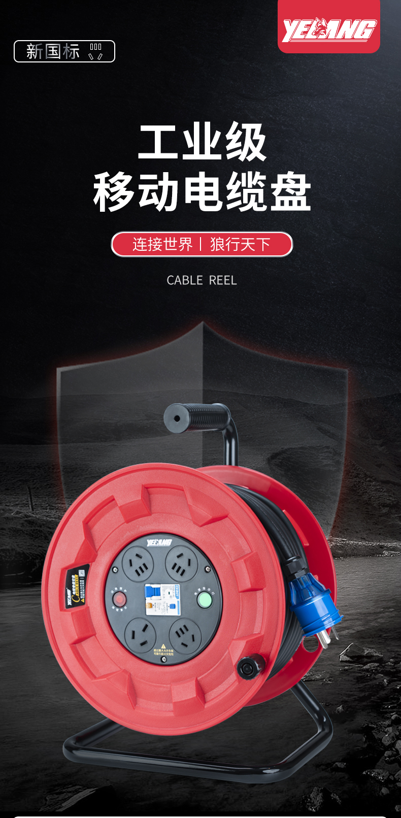 野狼YELANG/YL31021050/YZW 3*2.5*50米250V16A国标电缆盘/只 红色