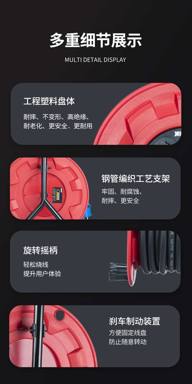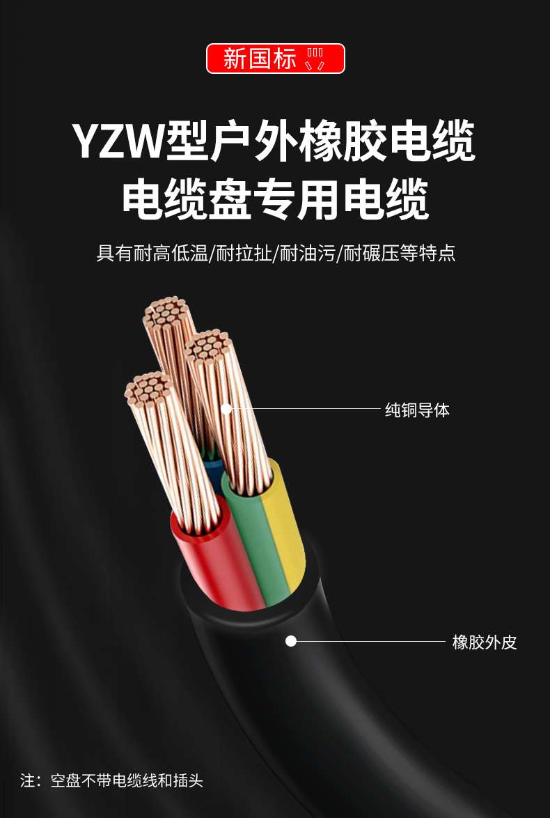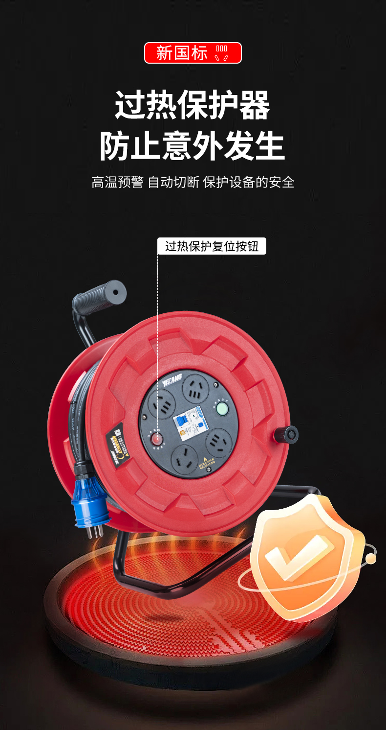 野狼YELANG/YL31021050/YZW 3*2.5*50米250V16A国标电缆盘/只 红色