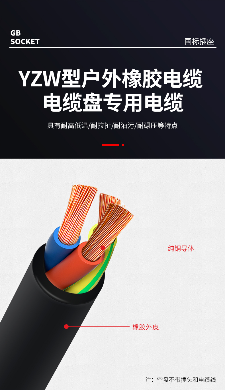 野狼YELANG/YLB33021130/YZW 3*4*30米250V16A国标电缆盘/只 红色