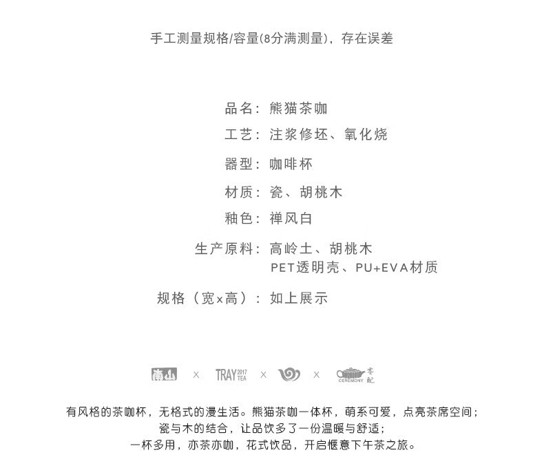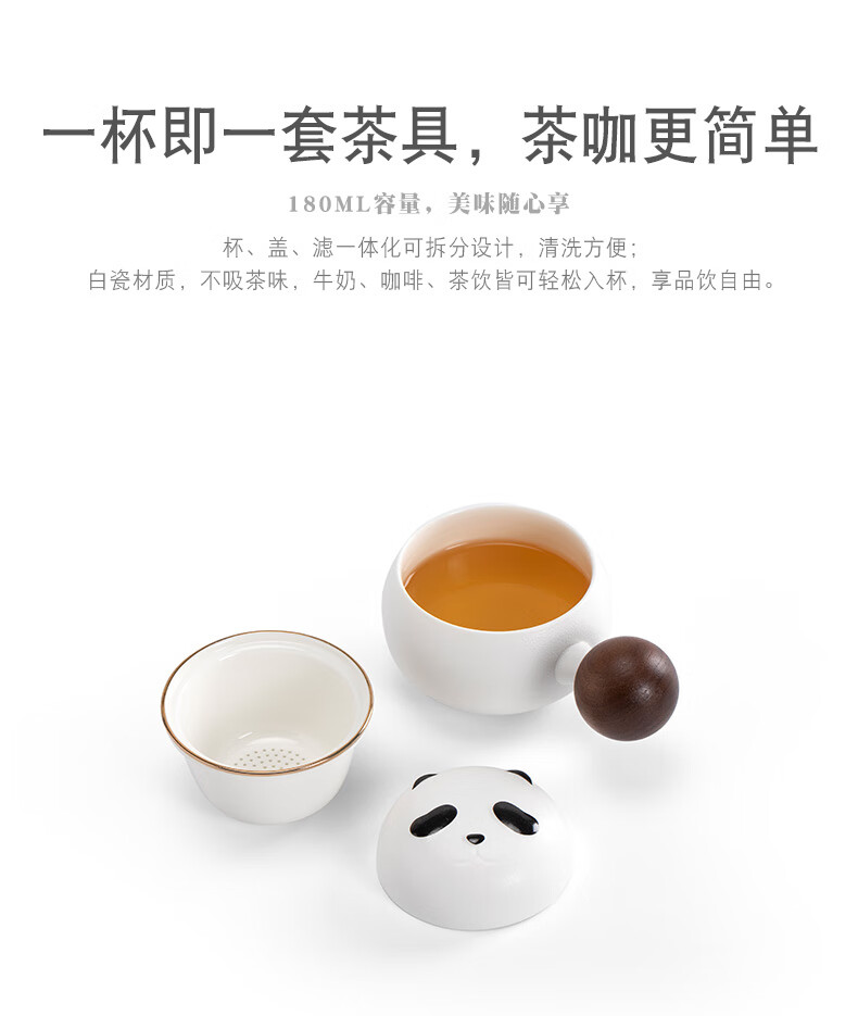 南山先生 熊猫茶咖(带杯垫)1套(NSZH1397-S)1杯1盖1勺1杯垫 单位:套