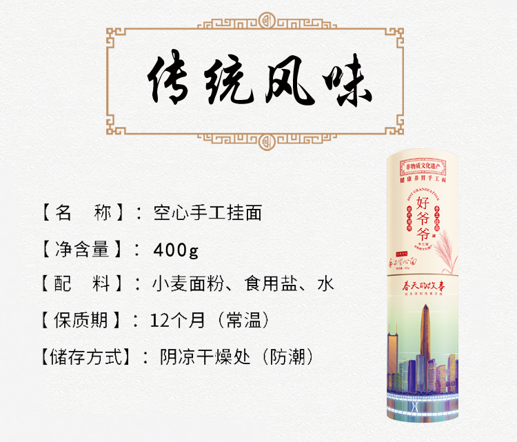 好爷爷手工空心面城市款原味把装400g 单位:把 城市款原味把装400g