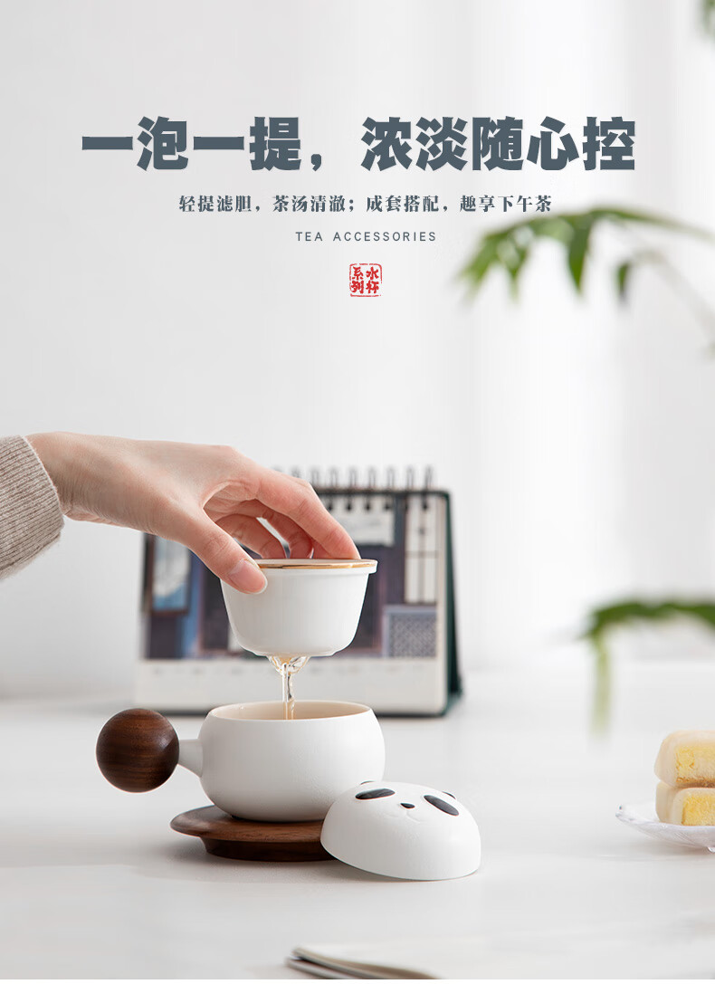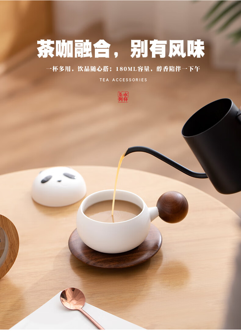 南山先生 熊猫茶咖(带杯垫、带旅行包(NSZH1502-S)1杯1盖1勺1杯垫1便携包 单位:套