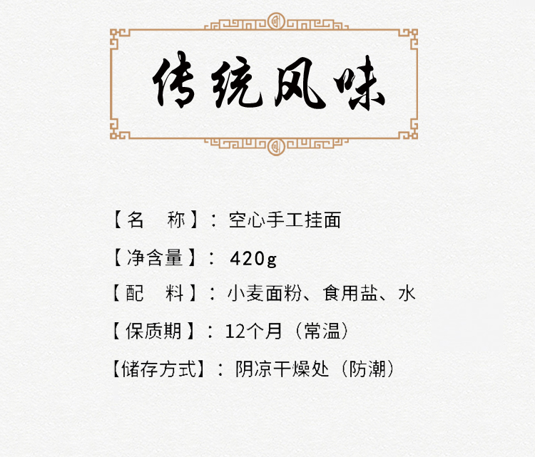 好爷爷手工空心面丝绸款原味420g 单位:盒 丝绸款原味420g