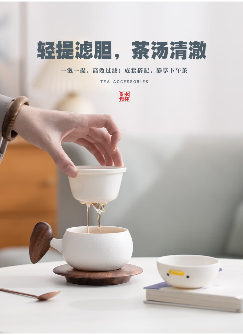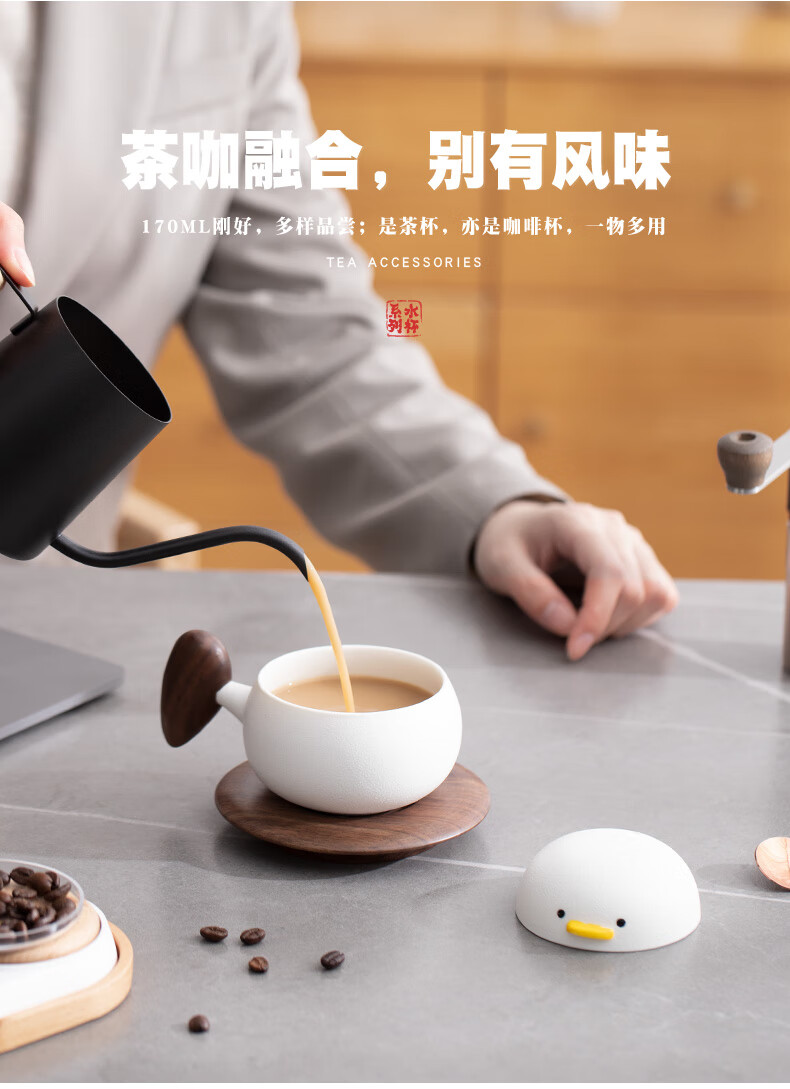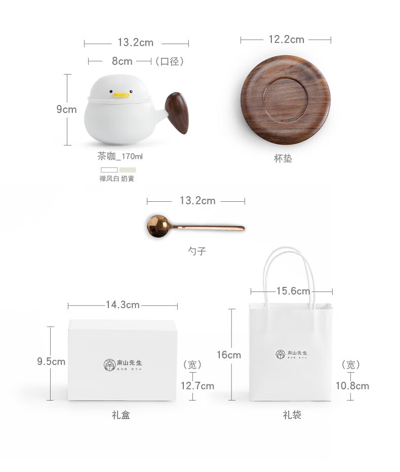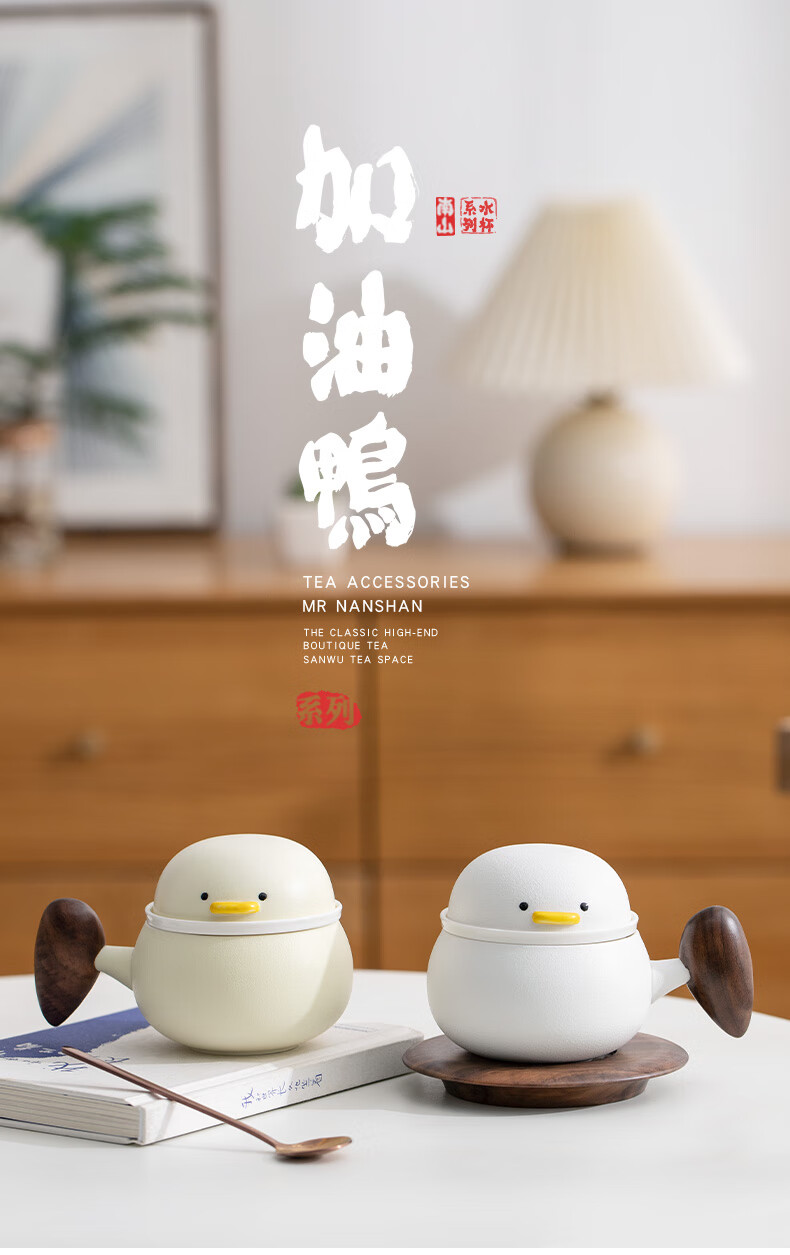 南山先生 加油鸭茶咖(带杯垫)_禅风白 1杯1盖1杯垫1勺 单位:套