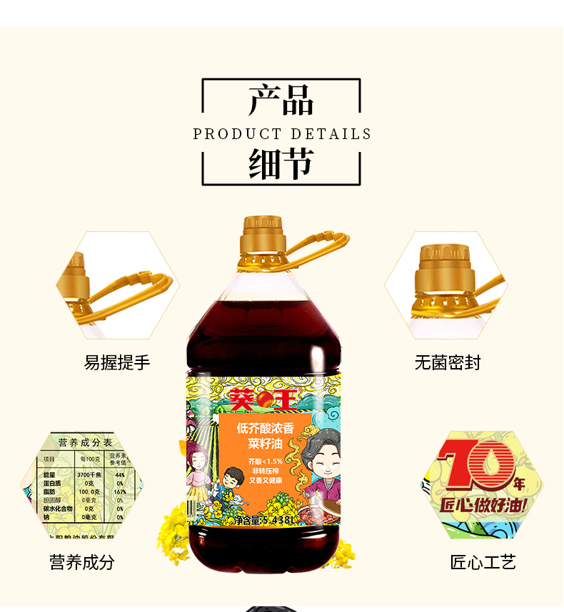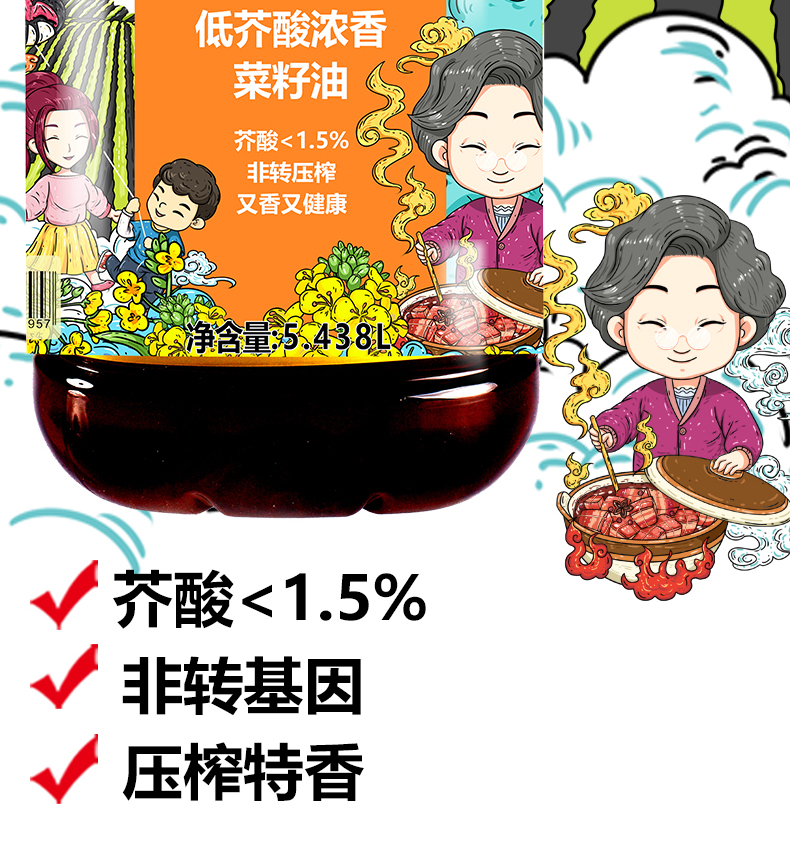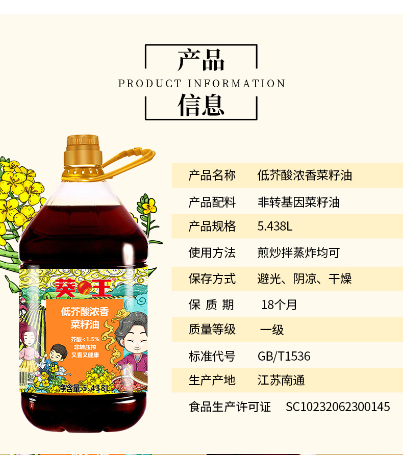 葵王低芥酸浓香菜籽油5.438L(单位:桶)