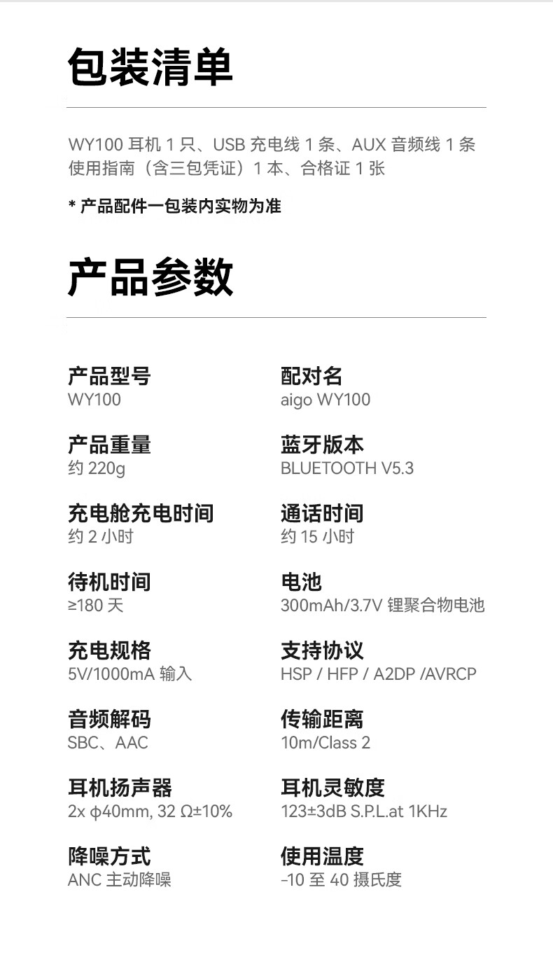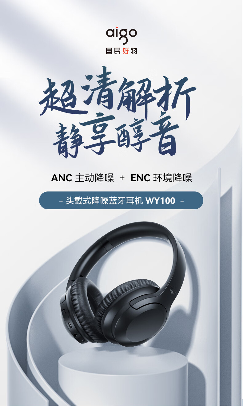 aigo爱国者 WY100 青春版头戴式无线蓝牙耳机 个 黑色