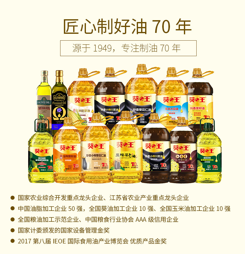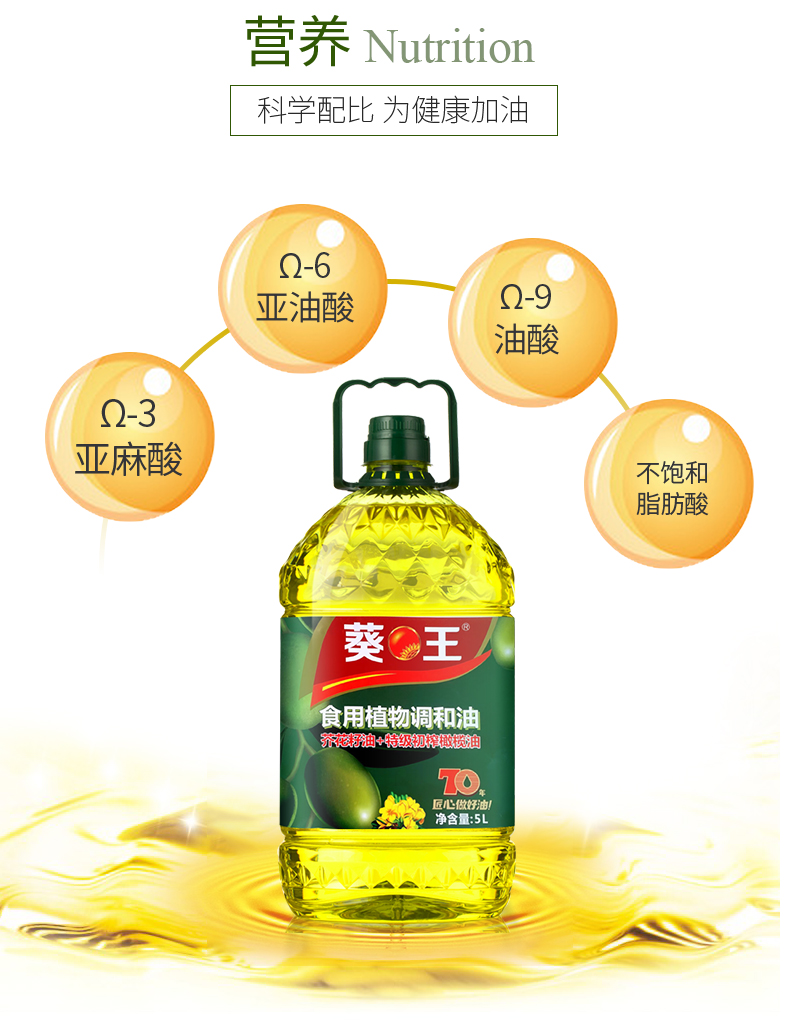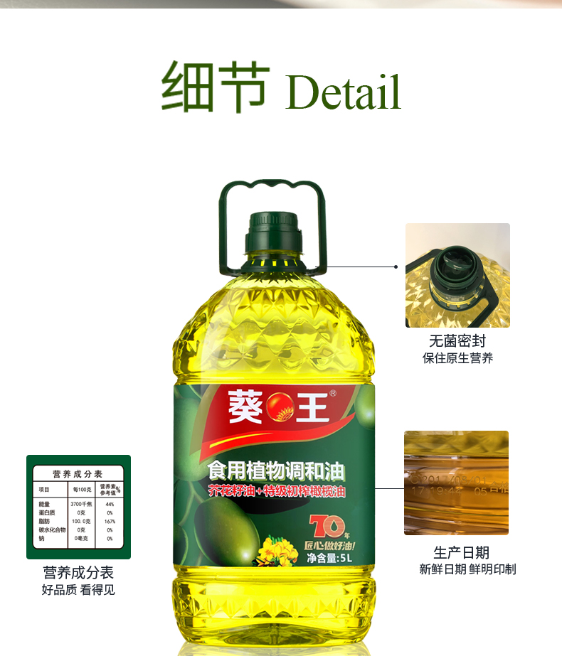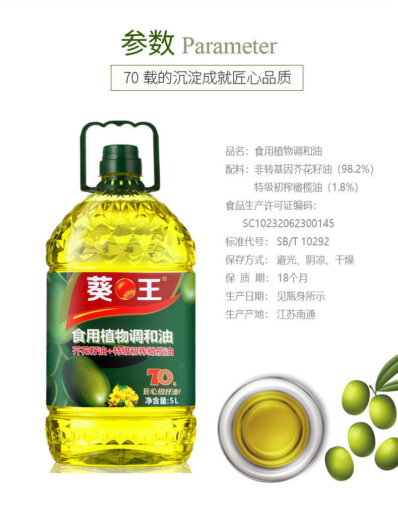葵王芥花橄榄食用植物调和油5L(单位:瓶)