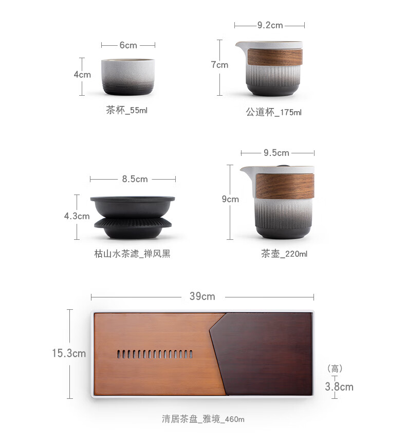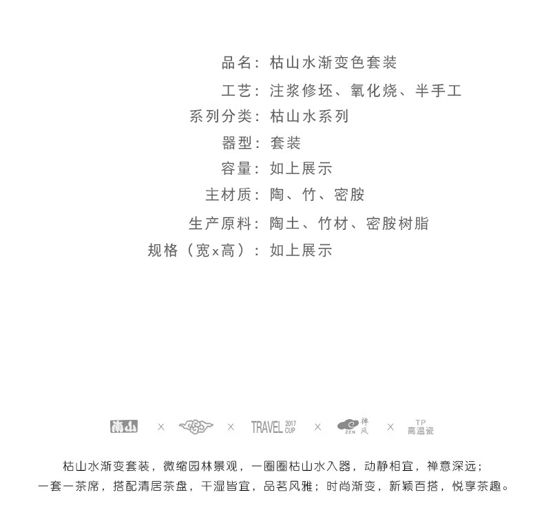 南山先生 枯山水渐变色套装 1茶壶1茶海4杯1茶巾1茶滤1茶盘 单位:套