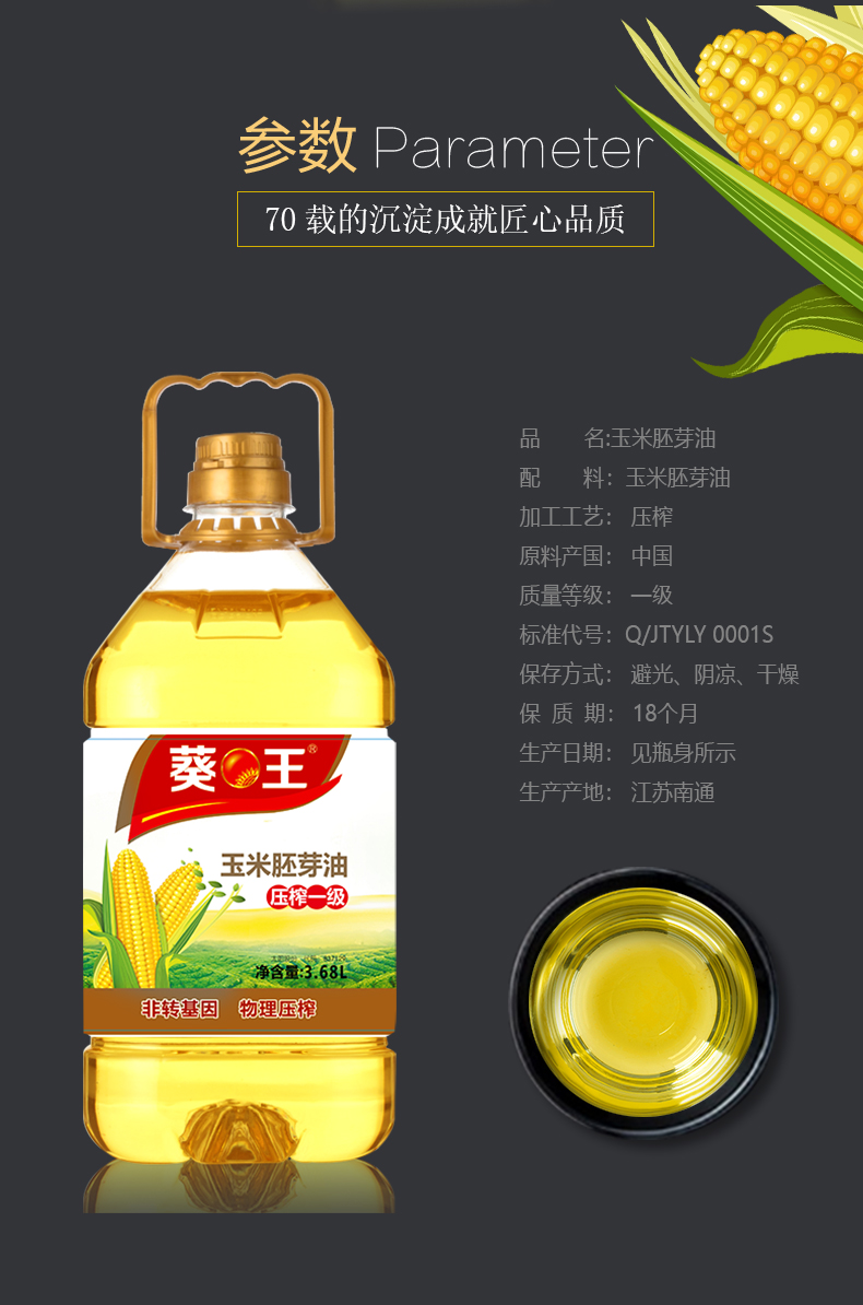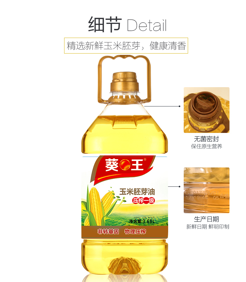 葵王非转基因玉米胚芽油3.68L(单位:瓶)