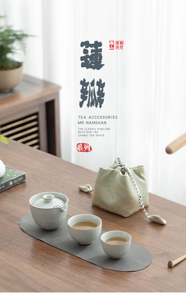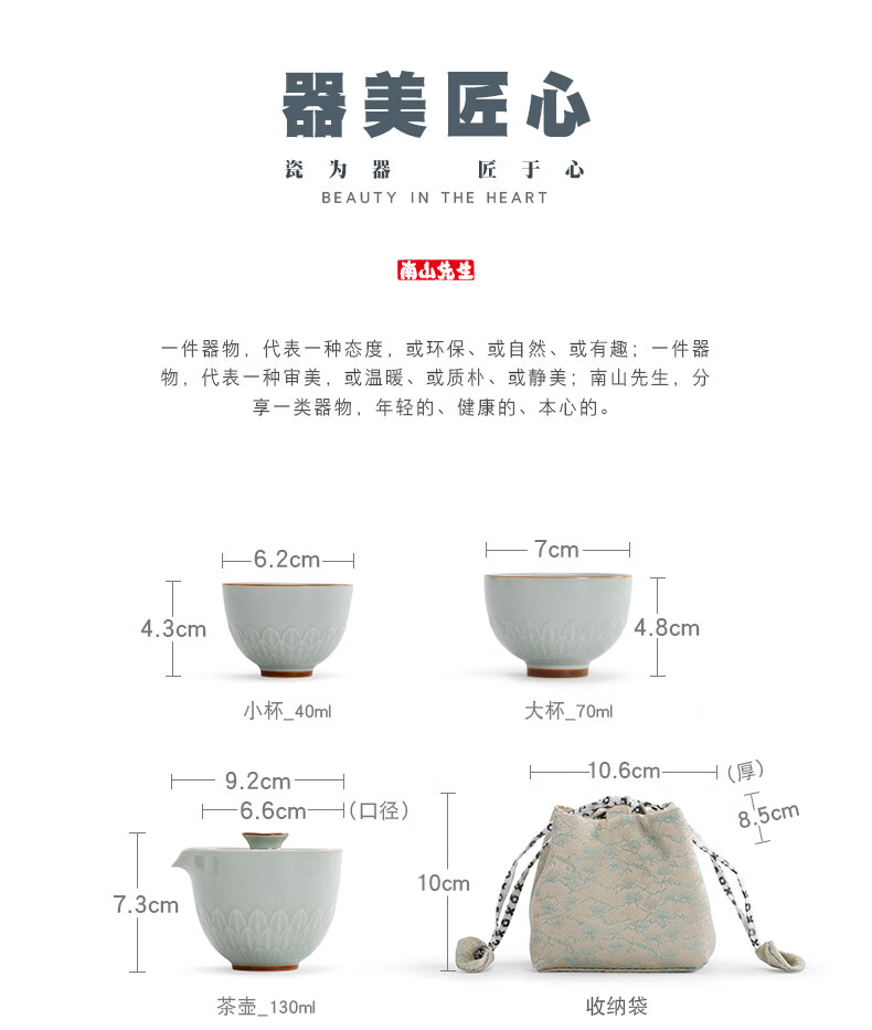 南山先生 莲瓣快客杯_古蓝(00233ns )1壶2杯1布包1茶巾 单位:套