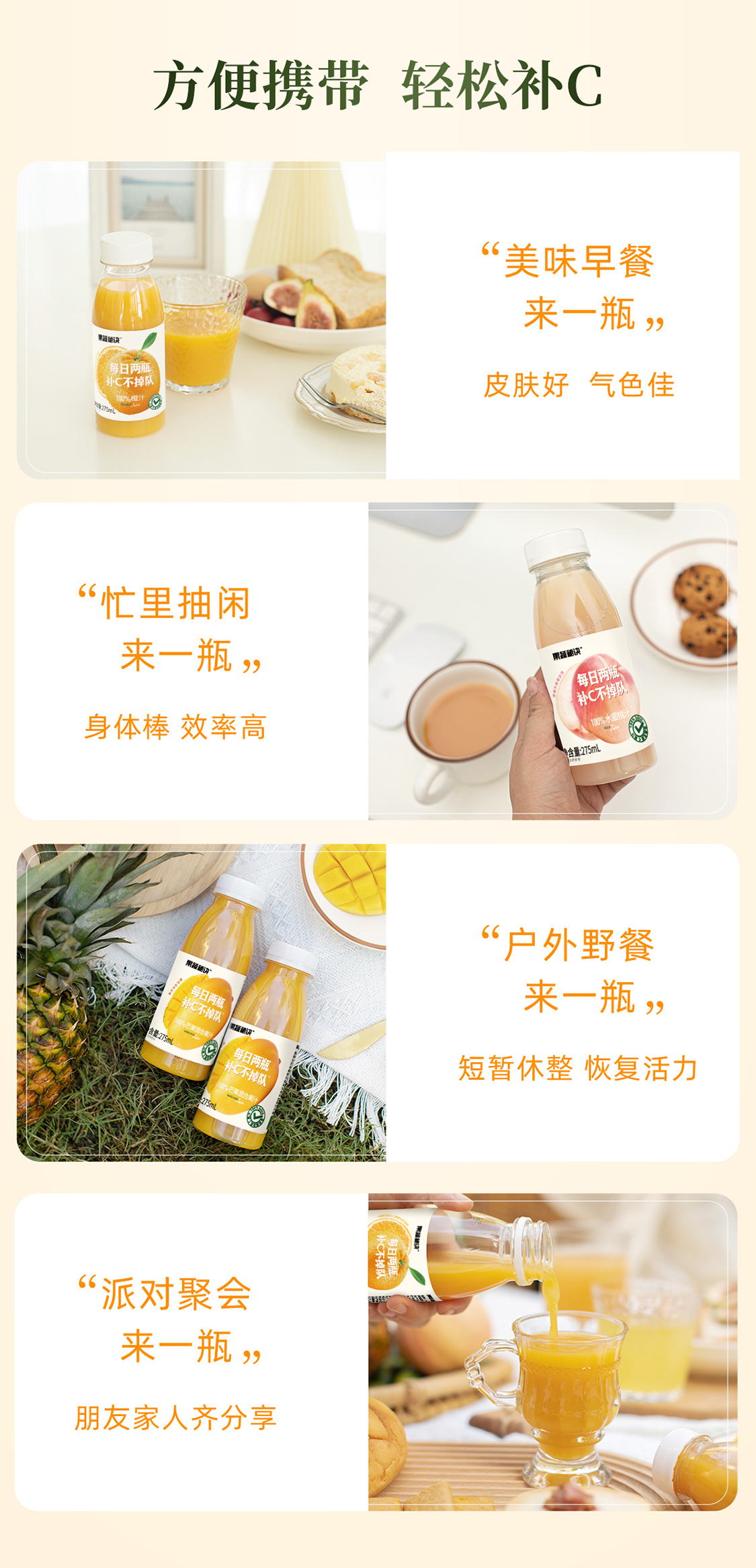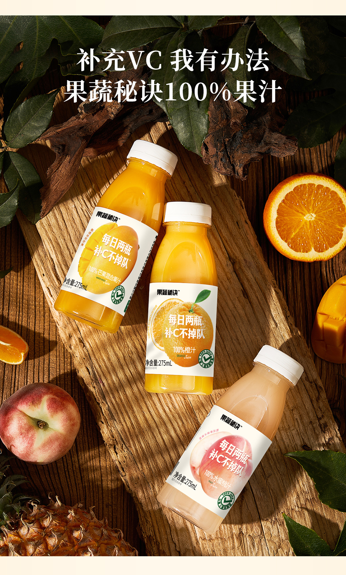 乐源 果蔬秘诀100%水蜜桃汁275ml*8瓶 单位:箱 粉色