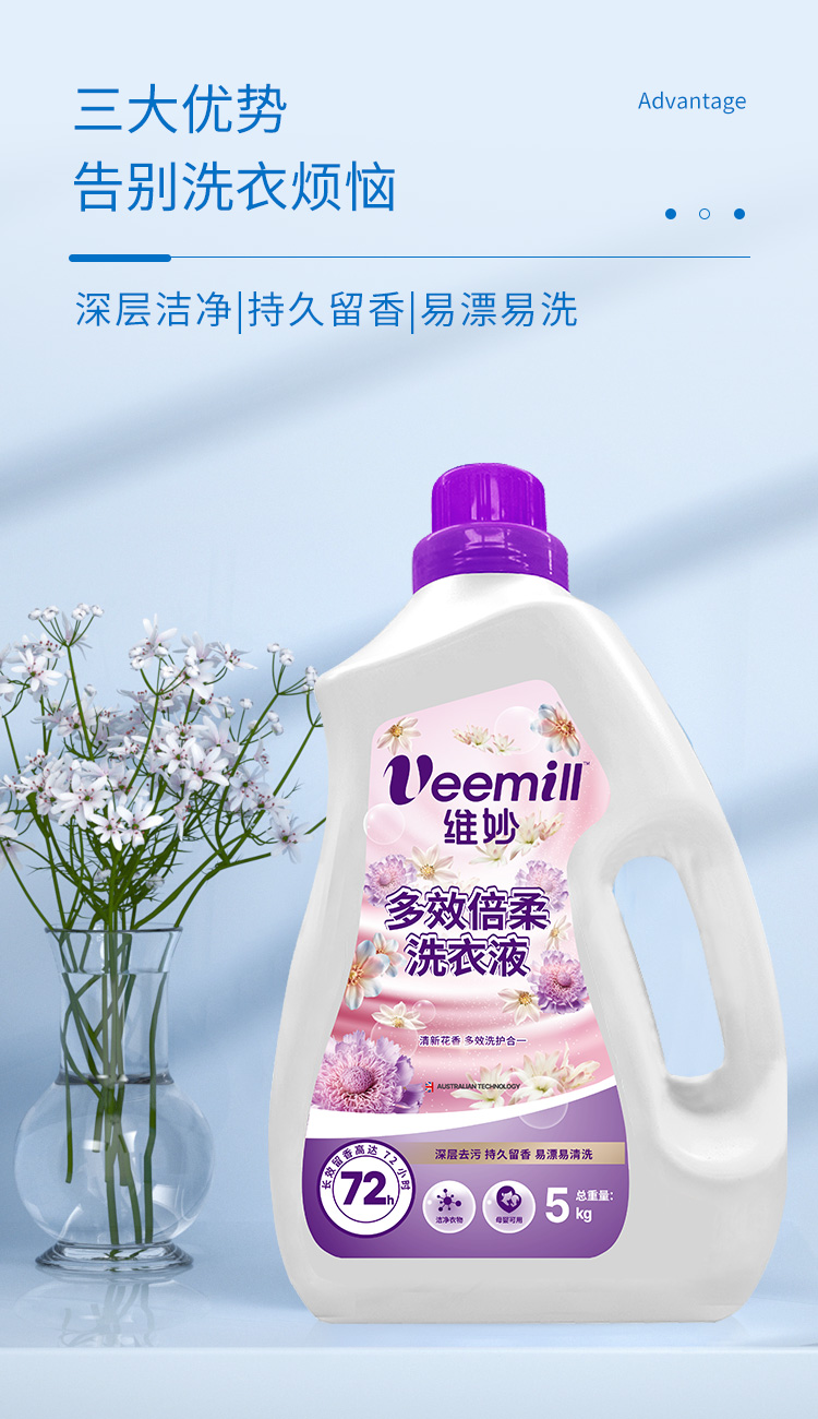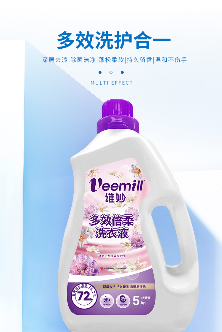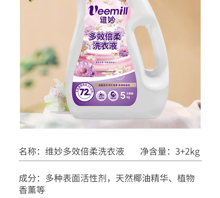 维妙 多效倍柔洗衣液5KG/瓶(单位:瓶) 紫色