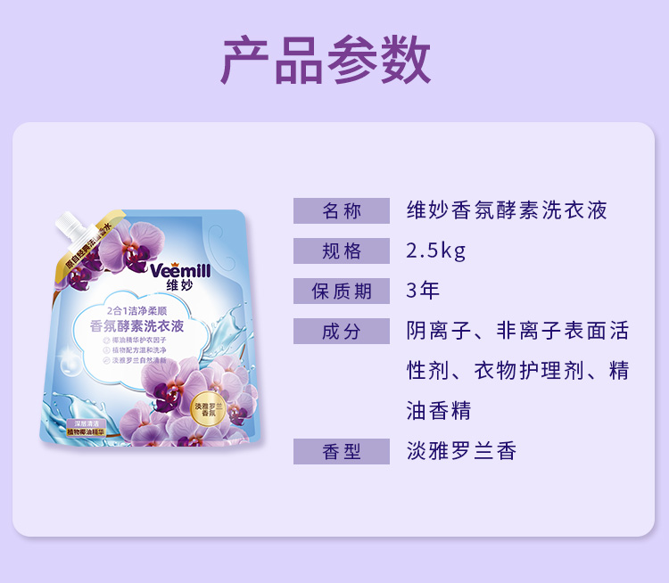 维妙 香氛酵素洗衣液2.5kg/袋 单位:袋 水蓝色