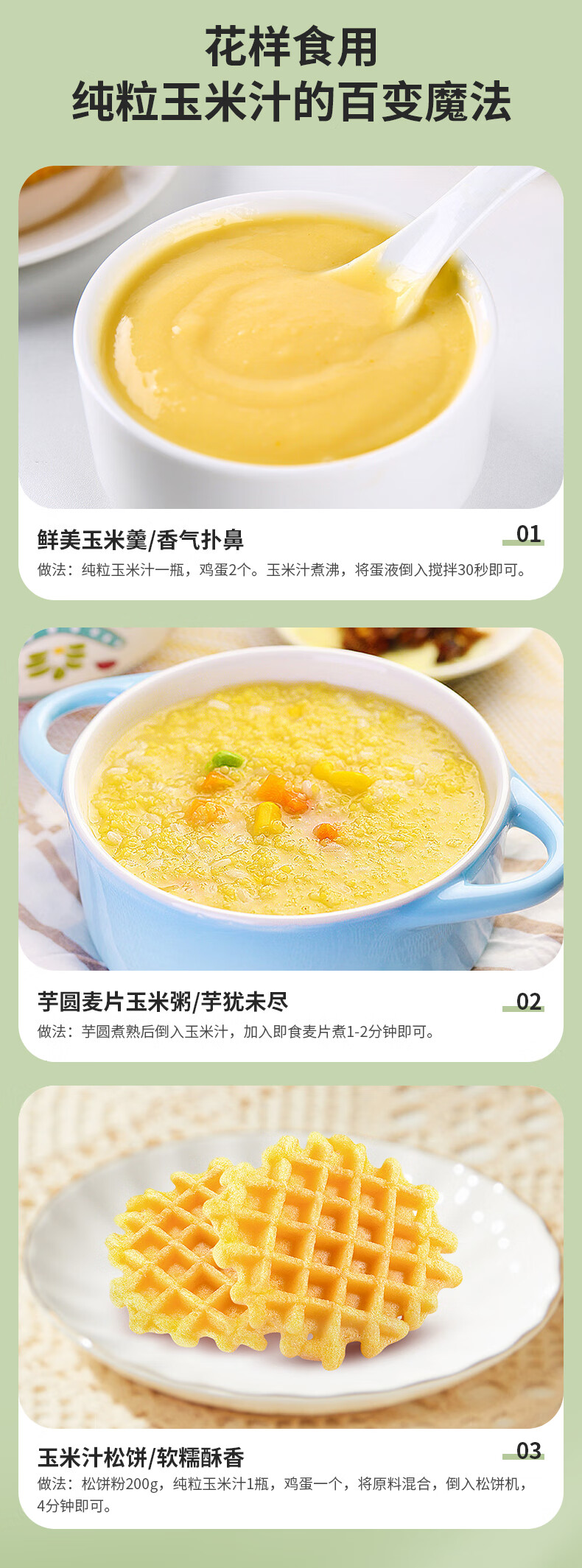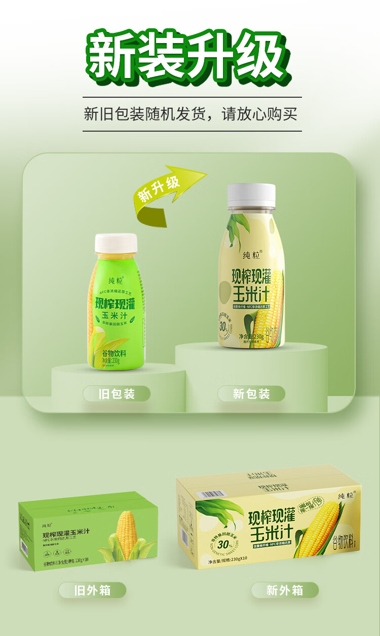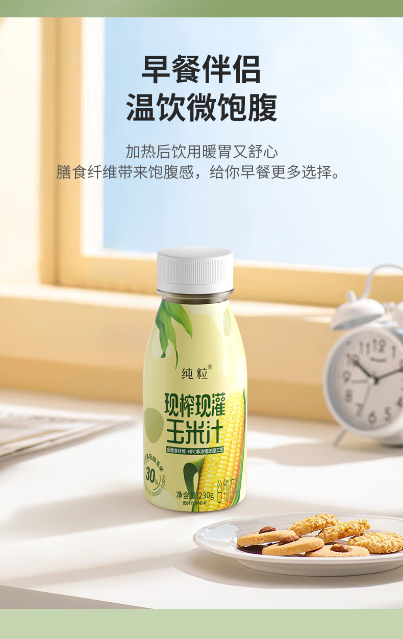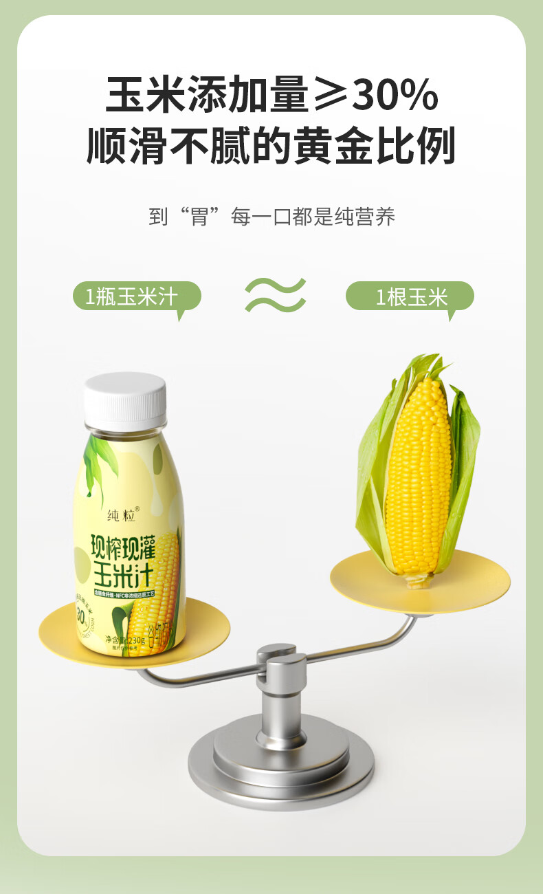 纯粒NFC现榨现灌玉米汁饮料早餐代餐果蔬汁 230g*10瓶/箱 山姆同系列(单位:箱) 拿铁色