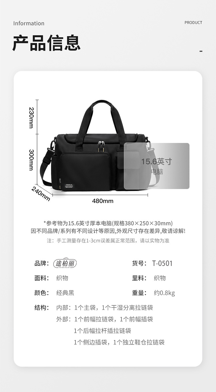 途柏丽(TOBERLIR) T0501 300*240*480mm 旅行袋 黑色(单位:个)